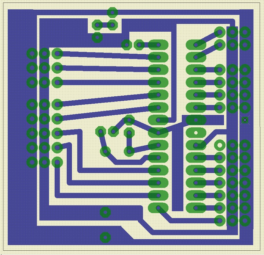 Дорожки с ровными углами это я конечно в курсе :) Но сходу не получилось. Я и так несколько раз переделывал разводку, чтобы минимизировать 2й слой (в моем случае это пара доп. проводков). Старался делать под прямыми углами, только где шаг разъема не совпадал с 2.54 мм пришлось извращаться.