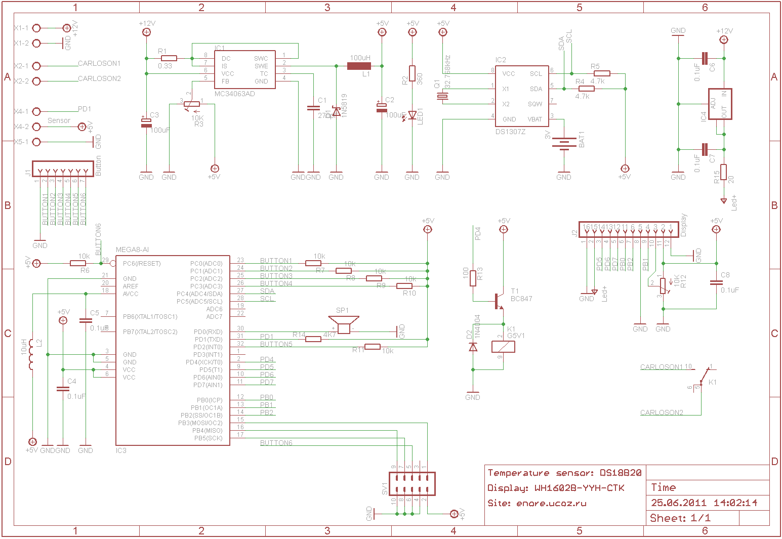 Ну иссходик конечно выложил. Также выложил разводку платы и схему(программа Eagle). Смотреть всё в архиве "Time"