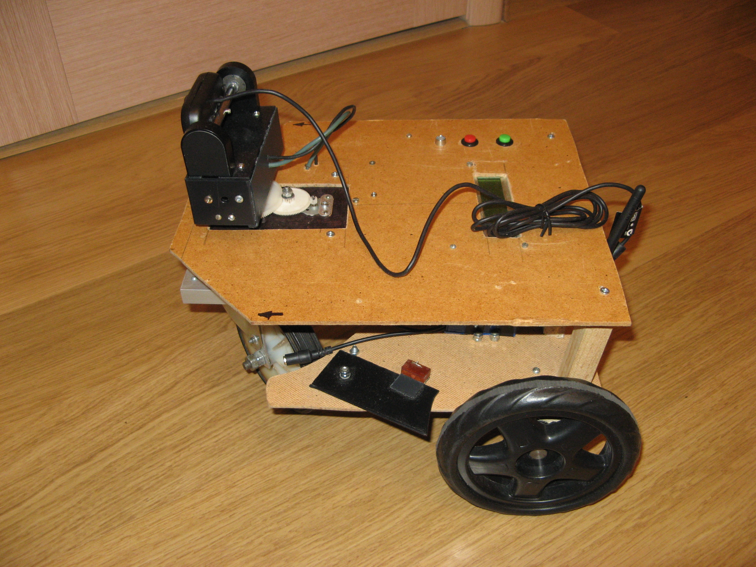 Доделал вторую половину робота - верхнюю крышку. В ней расположены - двухосевой привод камеры с уз-дальномером, управляющий контроллер, индикатор, термодатчик, кнопки. Вся электроника крышки управляется основным контроллером через i2c. Дальномер взят из фотоаппарата Polaroid. Как видно из фотографий, я не стал использовать готовые сервоприводы - их я сделал "с нуля". Оба привода имеют обратную связь через переменные резисторы и управляются контроллером. Фотографии робота: