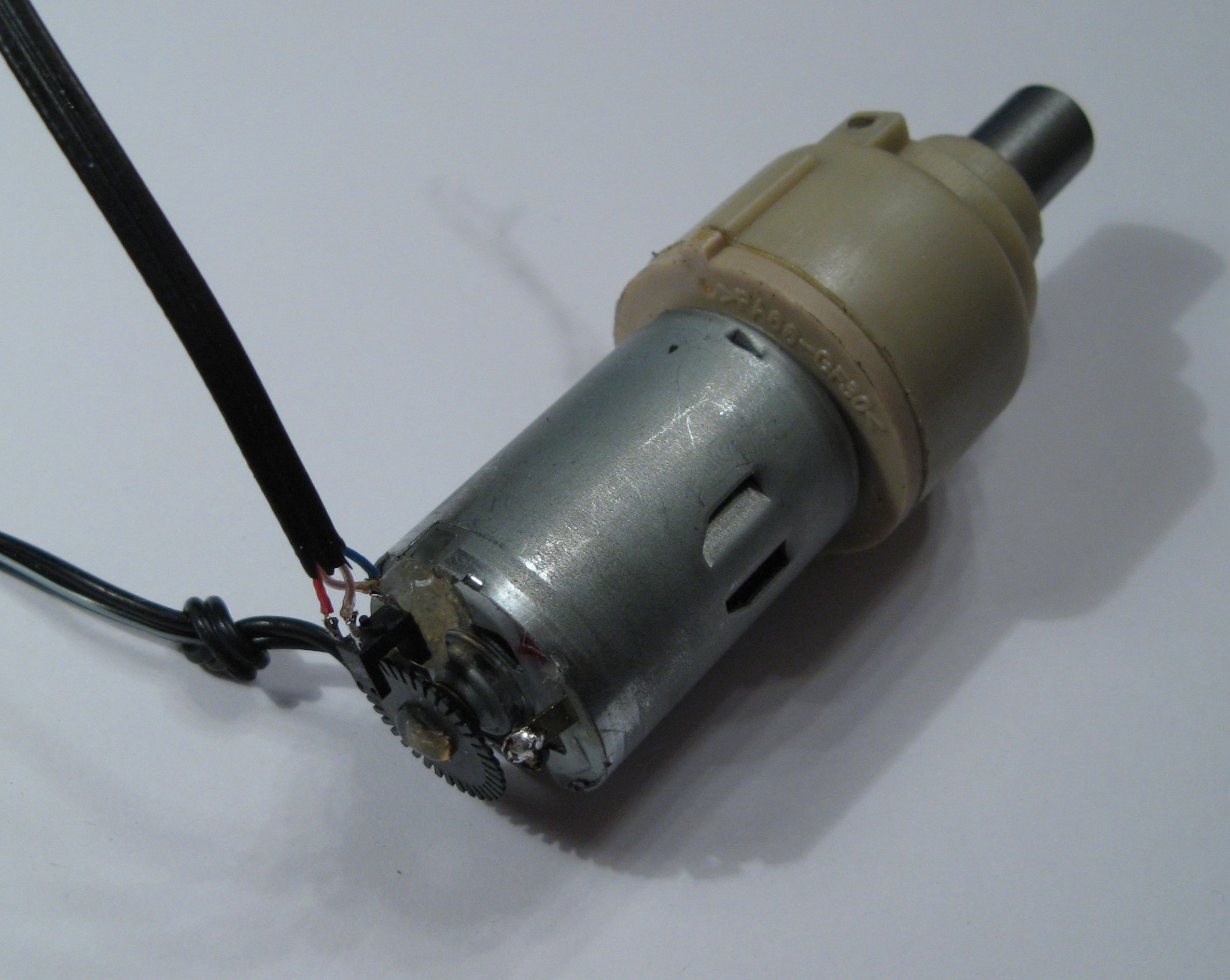 Моторы с редукторами взял из электрических отверток. На валу двигателя установил оптический экнодер(колесо из мышки). Позже постараюсь его использовать.
