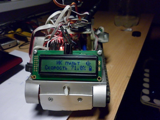 Недавно прицепил камеру на 2-х сервах, питание на камеру подается по команде с пульта. Управляется все с ИК пульта, давно уже хочу Bluetooth-UART модуль прикупить и управлять с ПК написав соответствующий софт но все руки не доходят.