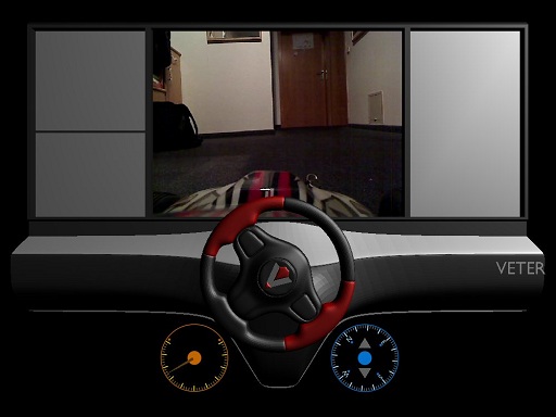 Это реальный скриншот. Водительское приложение полностью написано с использованием OpenGL и работает на Линуксе и Виндовсе (на Маке тоже должно по-идее, но не тестировал). Модель создана в Блендере и экспортированна в стандартный .DAE (COLLADA) формат. Когда приходит очередной видео кадр, он распаковывается, из него создается текстура и накладывается на соответствующую панель в 3D cцене. Панели слева и справа предназначены для вывода дополнительной информации (типа чтоб логи непонятные ползли постоянно и т.д.