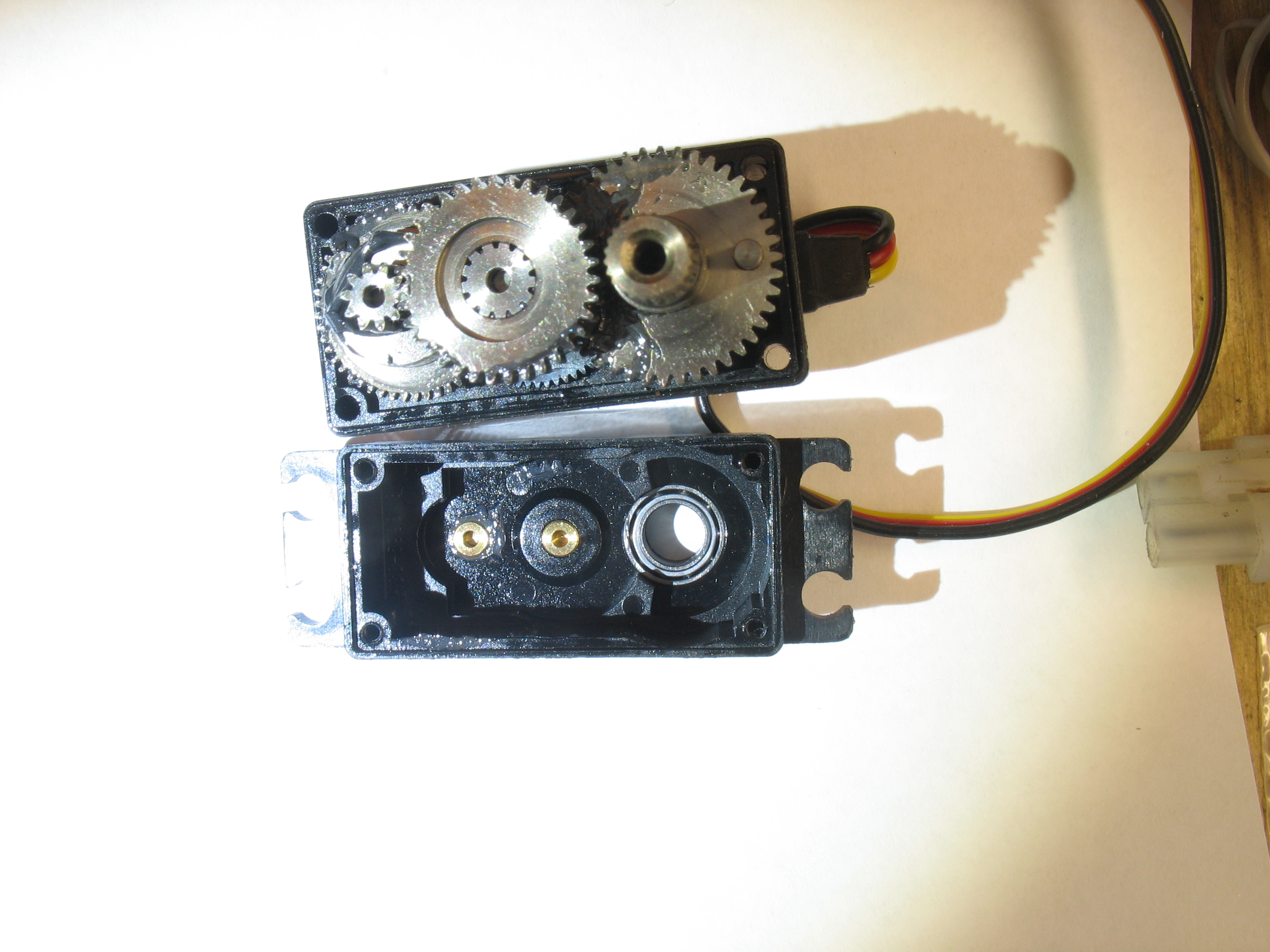 Короче, на первом этапе имеющиеся сервы меня устраивают. При условии, конечно, что удастся научиться их не гробить. А у меня все настойчивее складывается впечатление что я просто не научился пока пользоваться имеющимся оборудованием и механикой. Надо будет наконец задействовать датчики тока и выводить эту информацию оператору на компьютер. И в дальнейшем эту информацию обрабатывать на уровне спинного мозга. Возможно, придется немного пересмотреть механику ( место соединения частей лапы ), чтобы не упиралась голень в щиток бедра ( шестеренка прикрыта специальным выступом металла, который при разгибании упирается в эту шестеренку ).