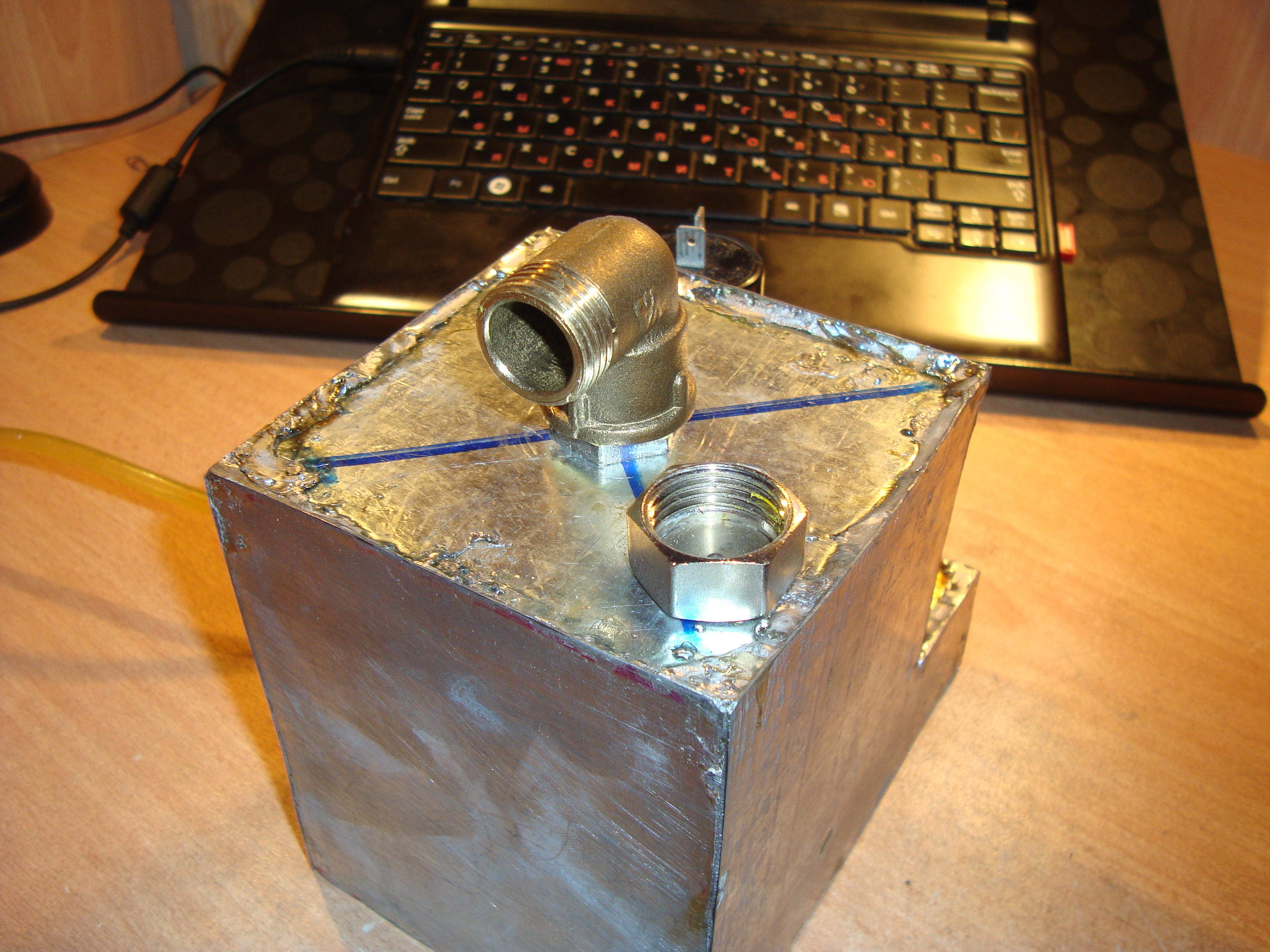 намутил емкость для жидкости, объем примерно 1литр :) дно сделал под наклоном, так что высасывает все до последней капли 8)