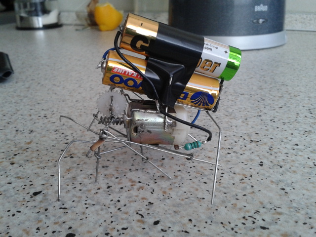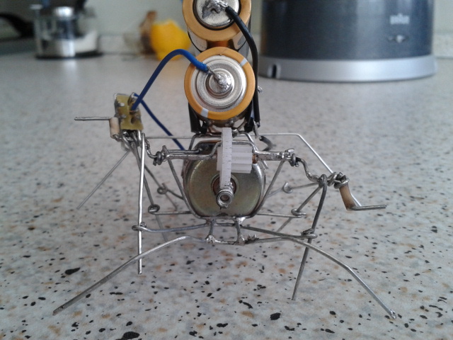 Сделал жука механика. По бокам пришлось сделать опору, потому что жук от двух батареек заваливался. Вот сылка на видео: http://www.youtube.com/watch?v=kDTlL-_ZY54