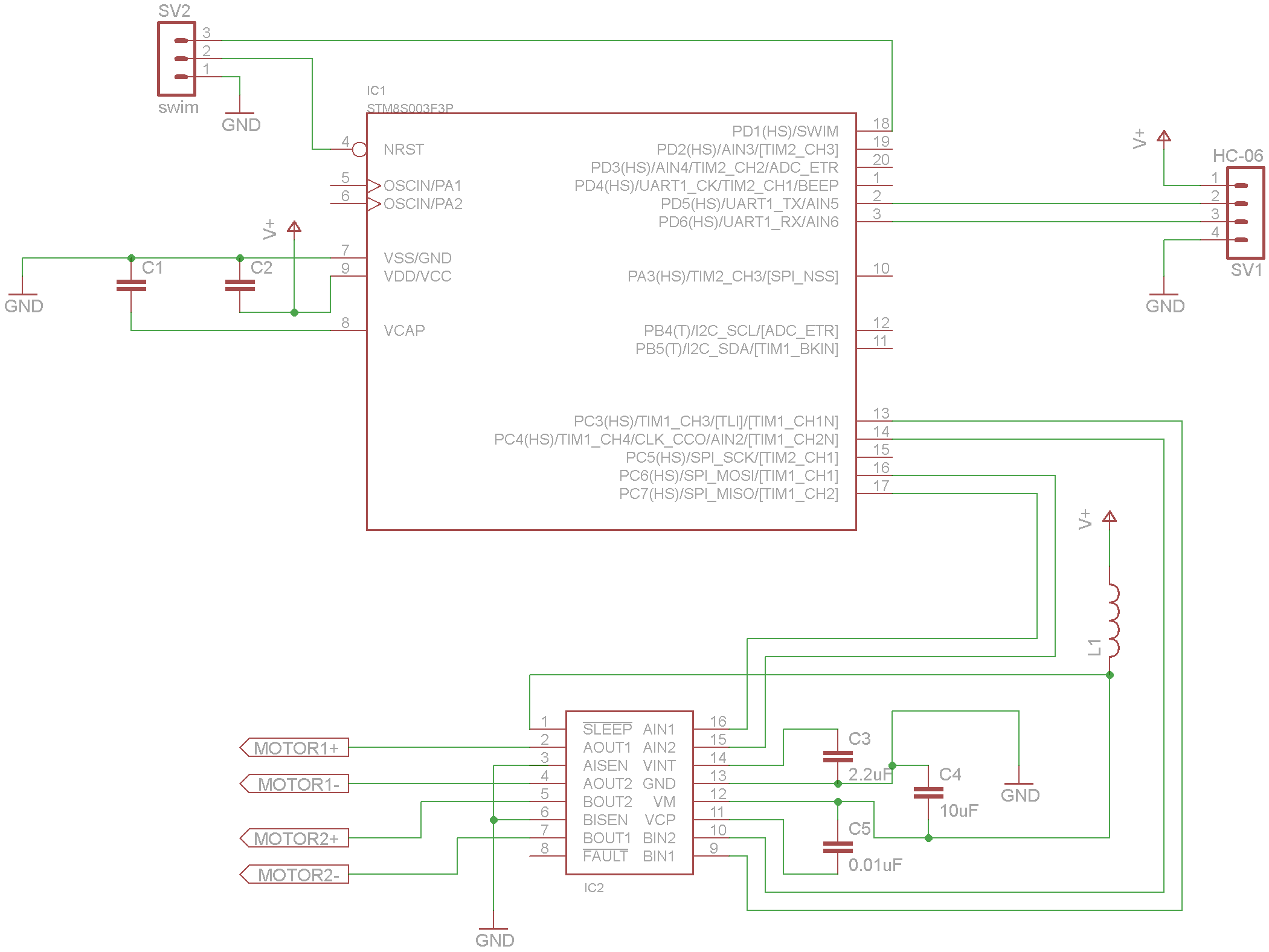 - Элементная база - stm8s903 + drv8833 + hc-06(*)