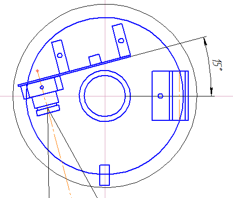 У меня для Mathcad есть специальная программа, которая считает этот угол. Глянул, в инструкции по сборке он не указан, для моего дальномера угол между лазером и оптической осью составляет 75 градусов. А не указан он потому, что ось лазера параллельна нормали к диску, а повернута плата с камерой.