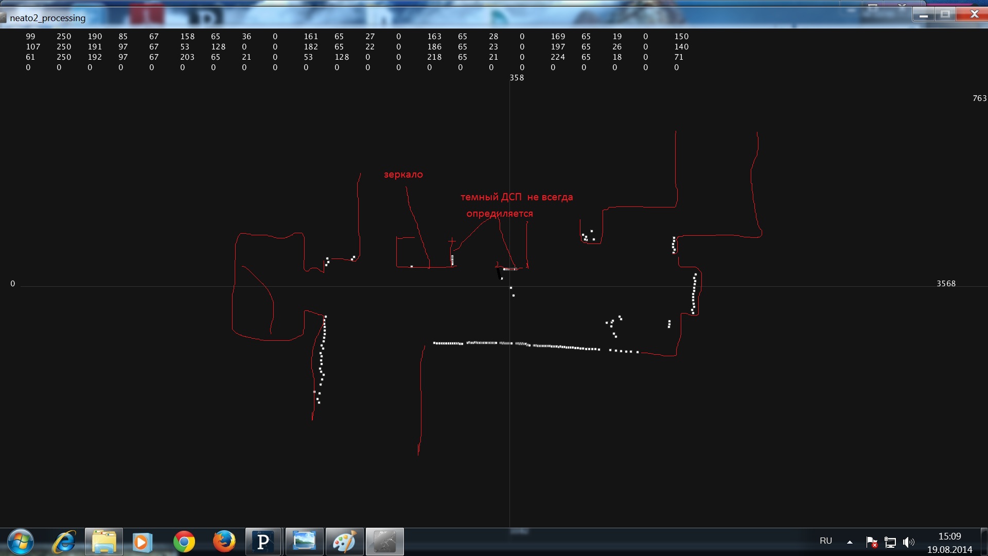 На скане от Neato виден “мусор ” вблизи вокруг радара. Прошу на это не обращать