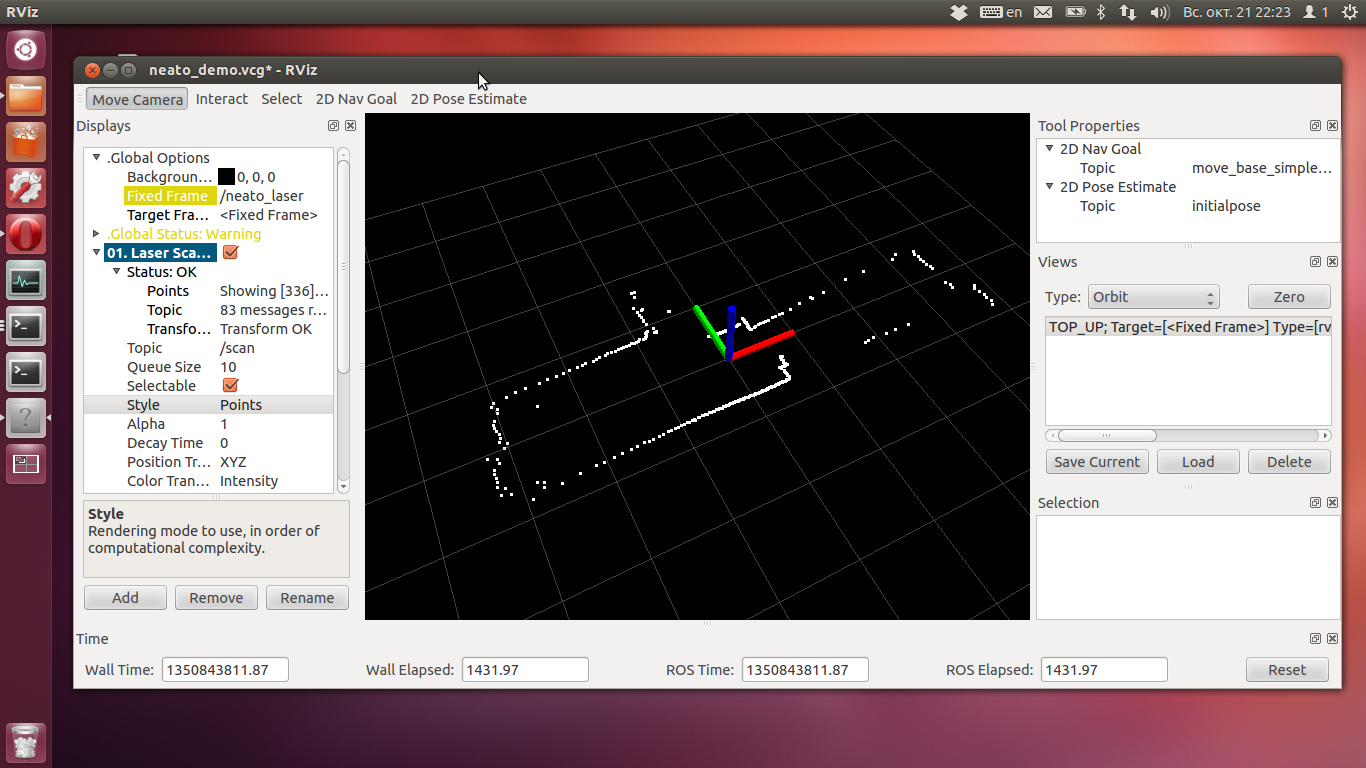 citizen писал(а):Начал изучать ROS, удалось переделать драйвер лазерного дальномера для neato под свой дальномер.