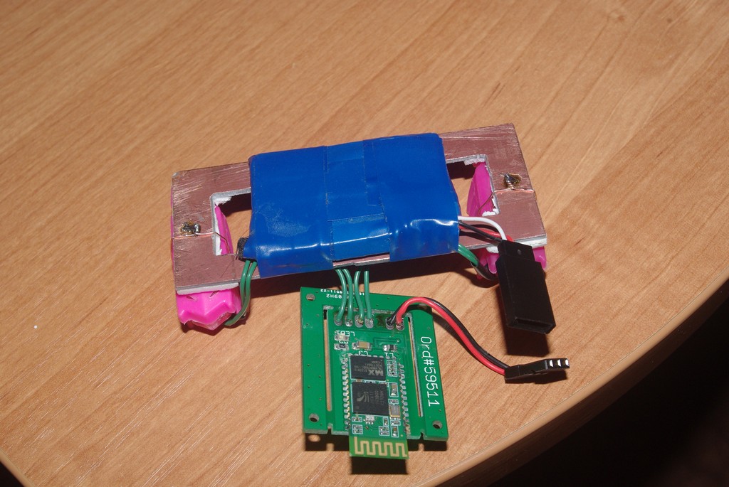 Аккумулятор, синяя изолента, проводочки