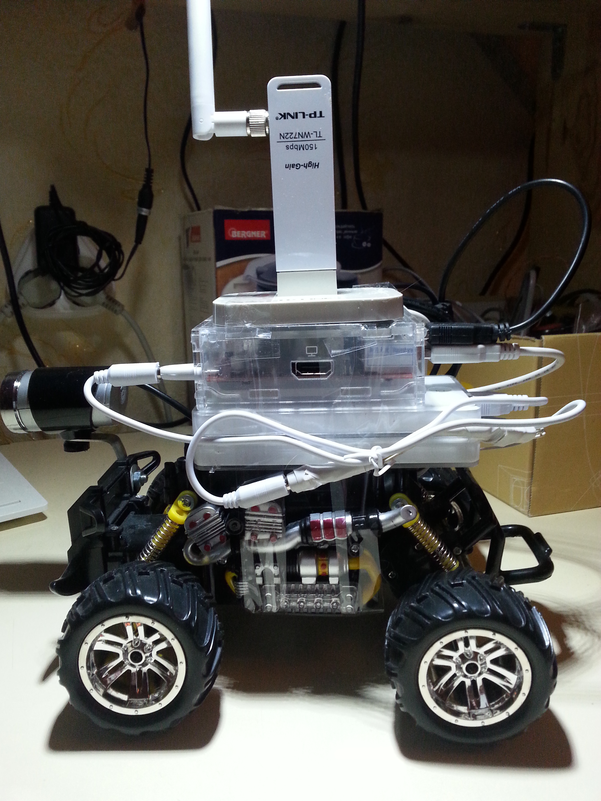 На случай пропажи связи машинка должна остановиться. Это все предусмотрено в скрипте, который управляет моторами. Возникла интересная проблема с остановкой - как тормозить после разгона ? Пришлось кратковременно крутить колеса в обратном направлении. Впрочем, когда управление было переведено с клавиатуры на джойстик, потребность в таких алгоритмах отпала.
