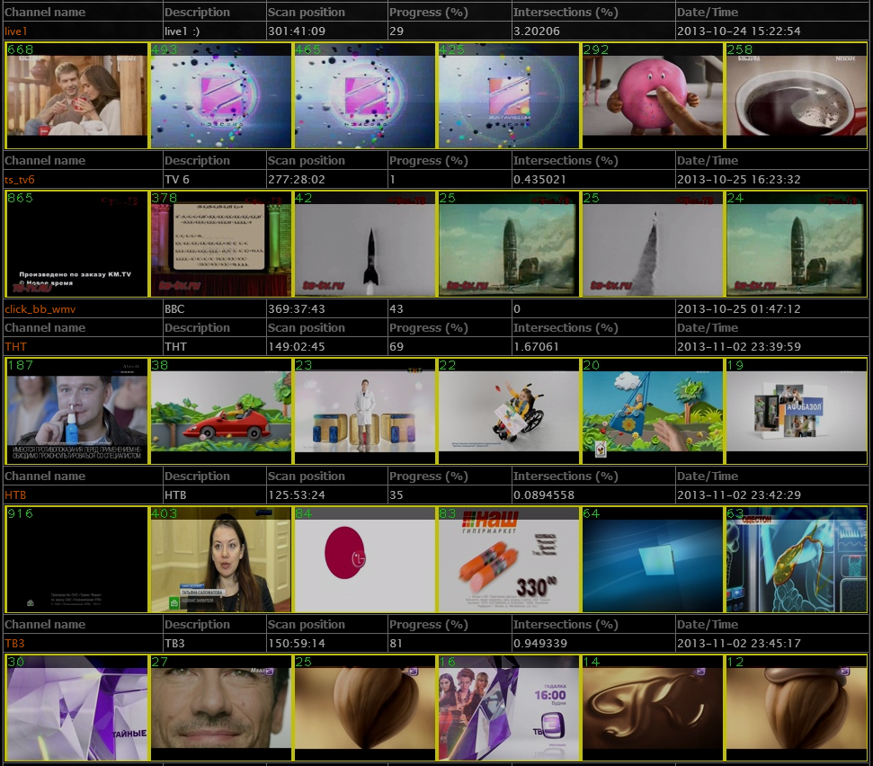Сейчас в системе сканируются четыре канала: «ТНТ», «Live 1», «TV 6», «BBC», но вы можете добавить и другие.