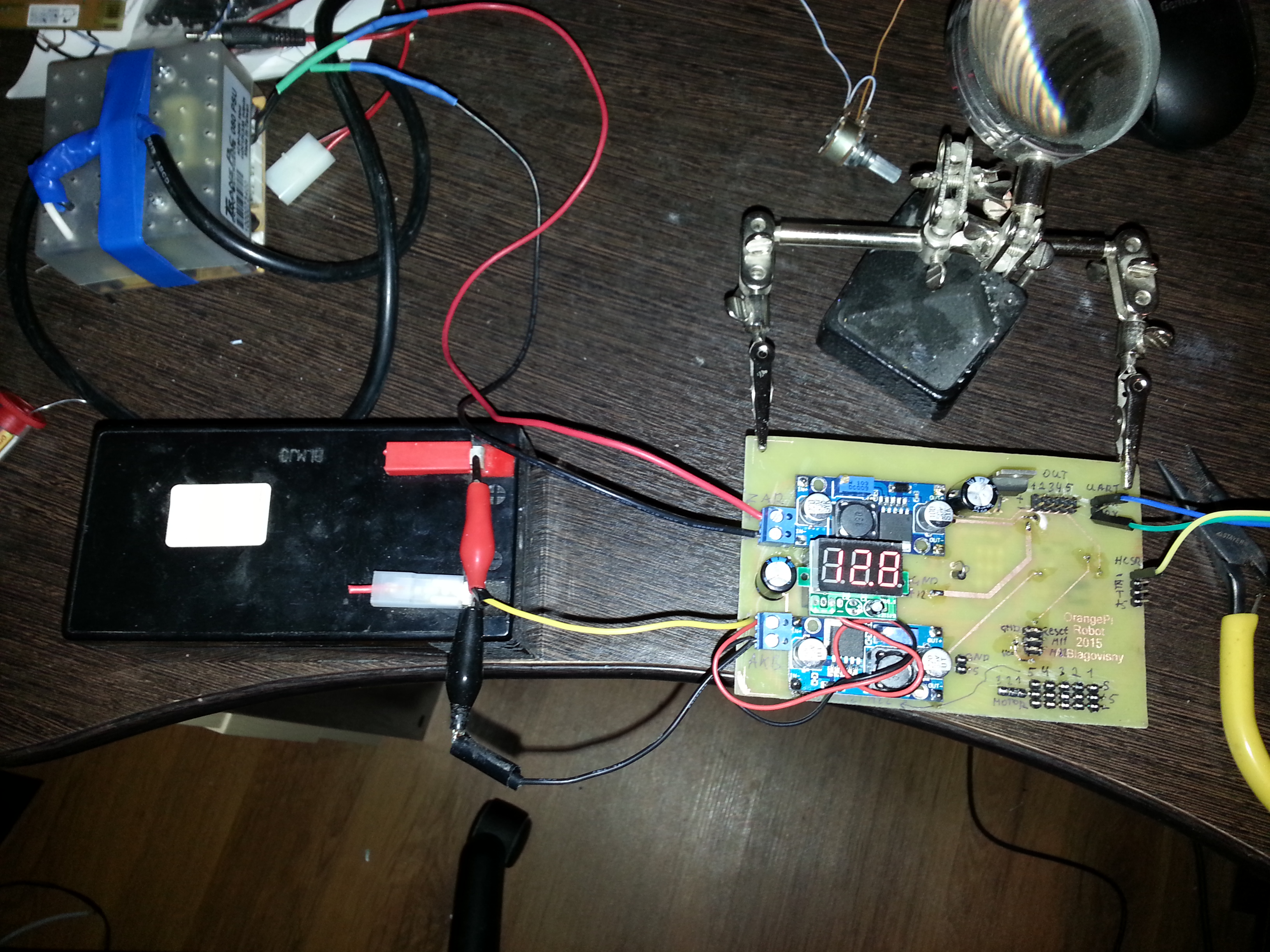 Сейчас я изготовил новую плату-контроллер двигателей и серв со встроенной зарядкой свинцового аккума.