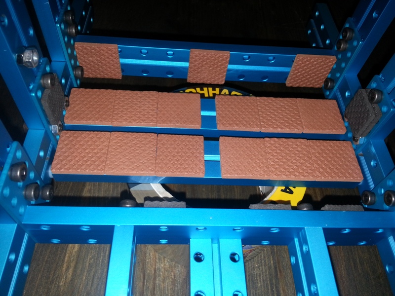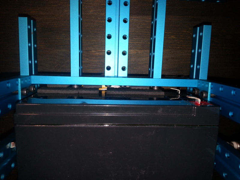 Дооформил посадочное место под аккумулятор. С помощью мебельных протекторов аккумулятор сидит очень плотно. Сверху его будет прижимать балка и трактор можно будет переворачивать как угодно, не вынимая аккумулятора.