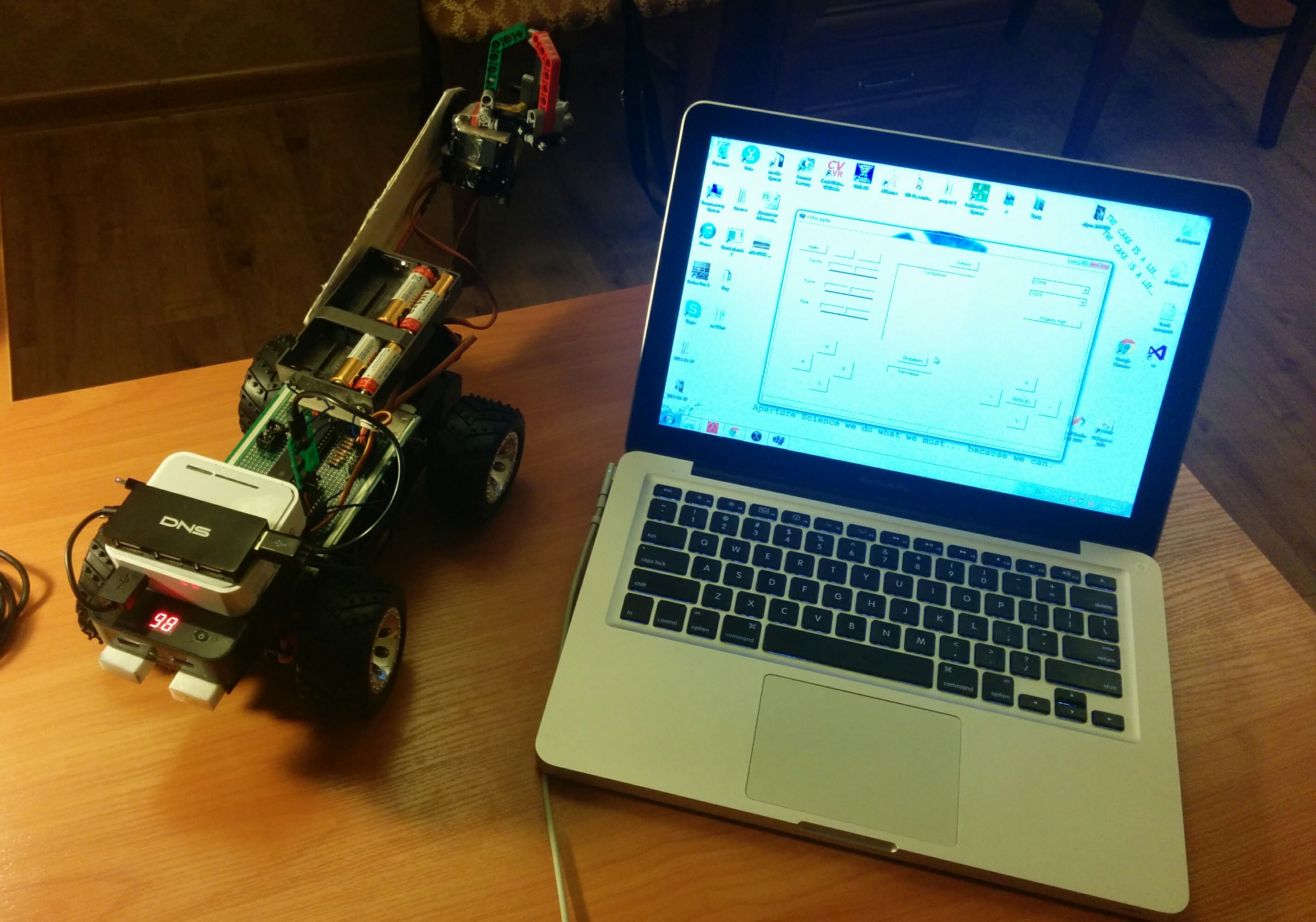 управляю самопальной программкой которая шлёт на ком порт команды, когда юзер жмёт на кнопки wasd или стрелочки