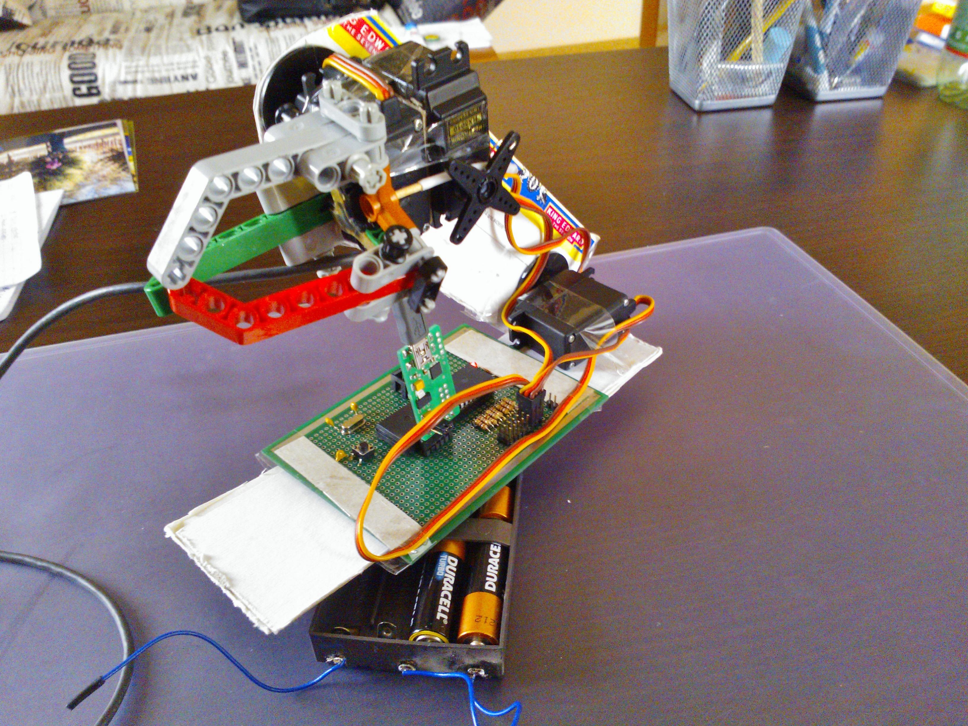 по началу тележка управлялась через usb->uart переходник с компьютера, в таком виде она даже побывала на собеседовании при поступлении в универ)) Но со шнурком далеко не уедешь, к тому же хотелось прицепить камеру. В общем хотелось вай файчик. Теперь на борту стоит ТэПэшечка mr3020 с CyberWRT, AtMega 16 управляет сервами по всем правилам товарища АВР123. (спасибо за клёвый курс по контроллерам!