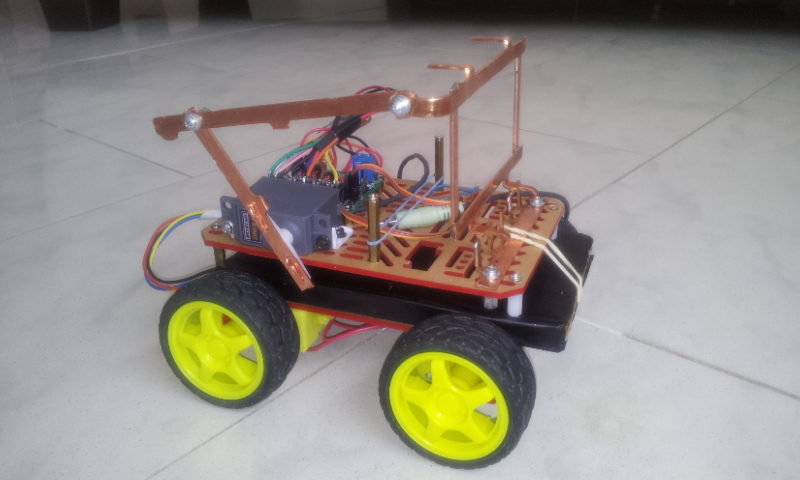 Для машины спаял рамку, соединенную с сервоприводом. Так что можно поворачивать телефон выше ниже, и таким образом направлять камеру. На фото тележка без смартфона (я им фотографирую).