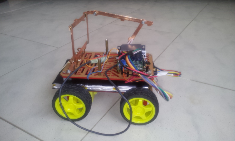 Для машины спаял рамку, соединенную с сервоприводом. Так что можно поворачивать телефон выше ниже, и таким образом направлять камеру. На фото тележка без смартфона (я им фотографирую).