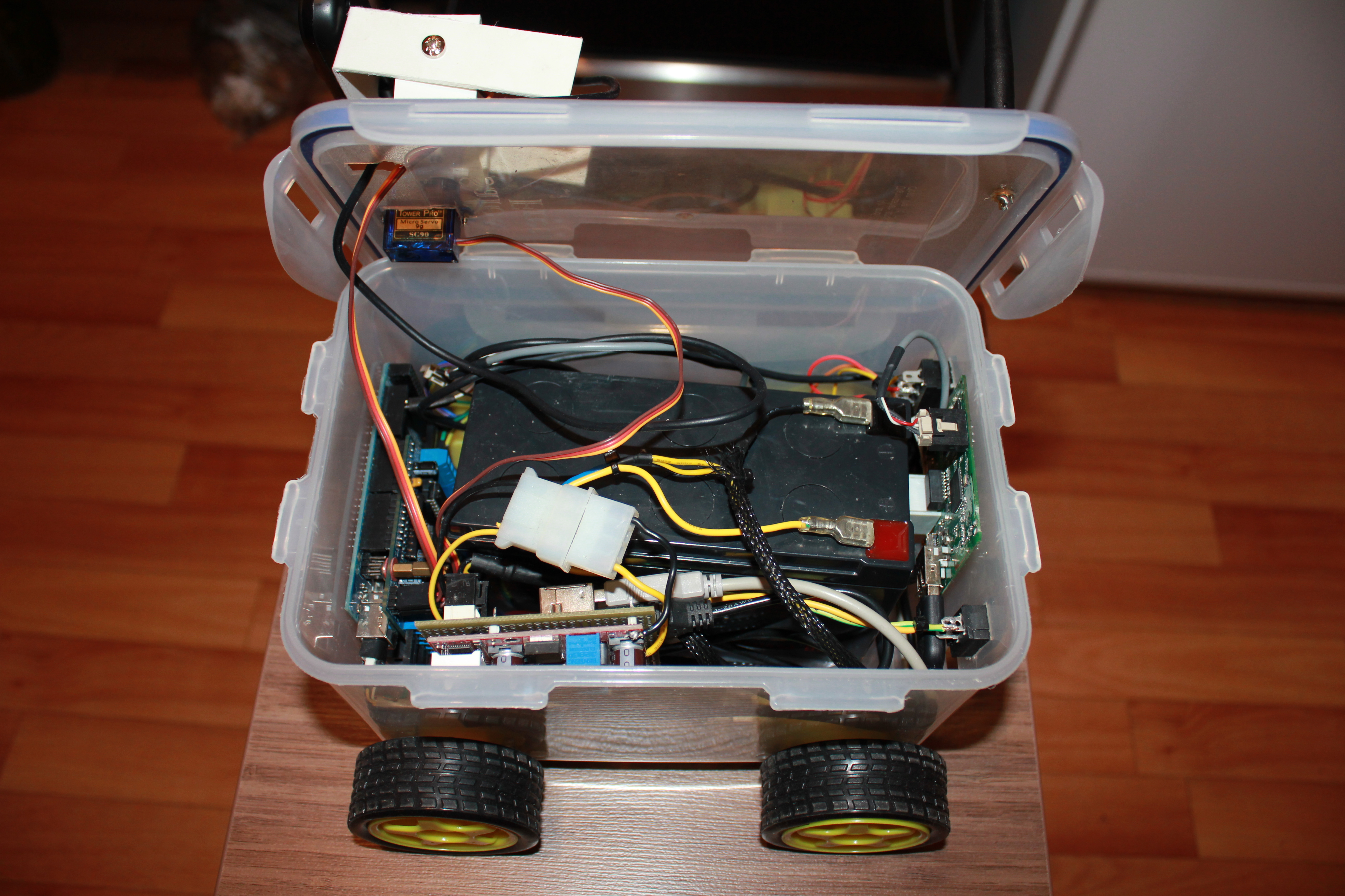 3. питание - АКБ 12В 7А (от ИБП), зарядка - сам ИБП, "фильтры" питания а) dc-dc step-down до 5В на логику; б) такой же только до 6.8В на моторчики;