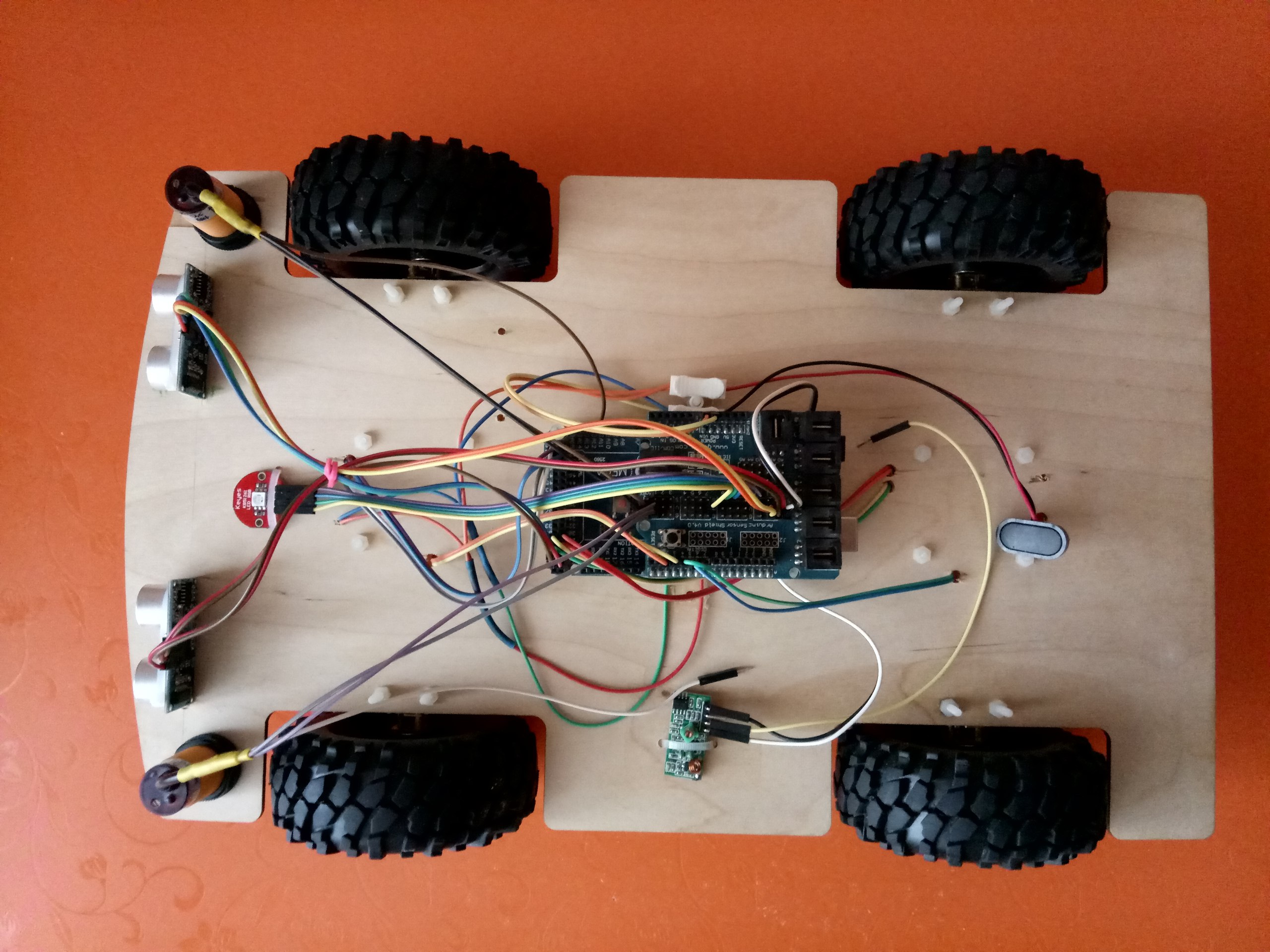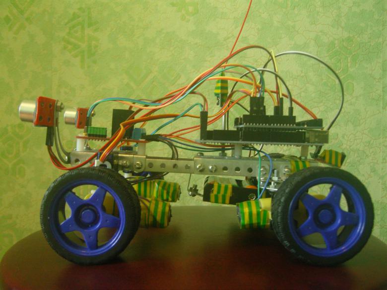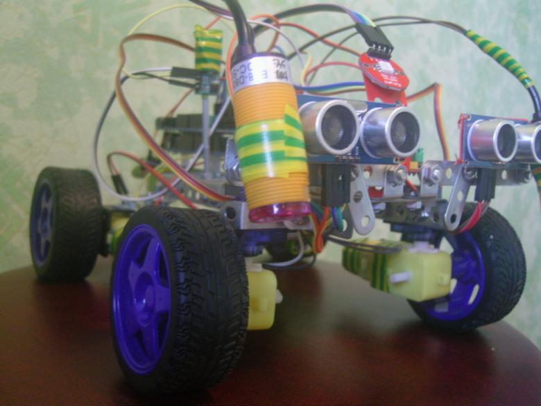 Два УЗ датчика - задумка такая: например, левый датчик видит препятствие, правый - свободно, значит объезд справа.
