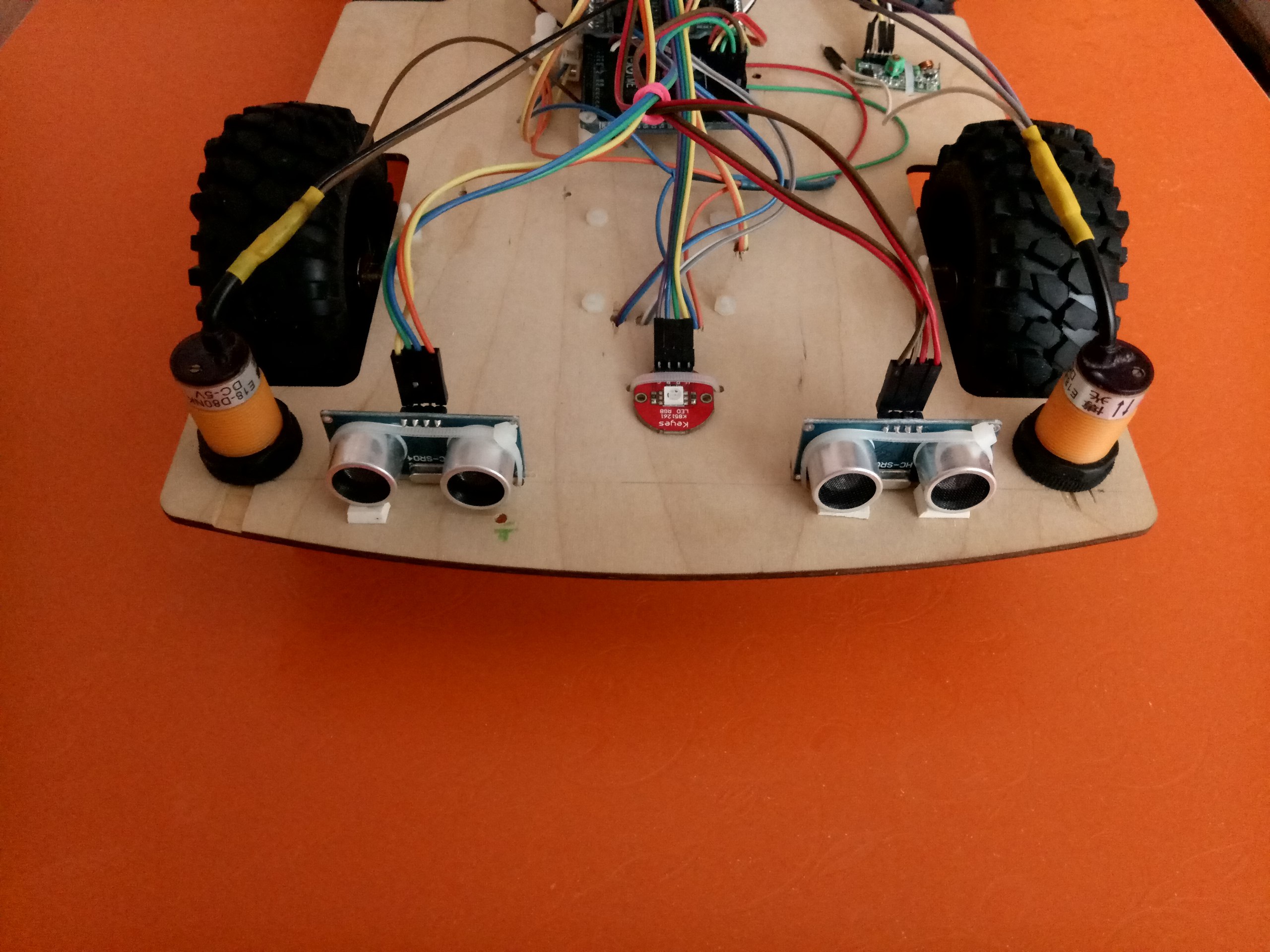 Два УЗ датчика - задумка такая: например, левый датчик видит препятствие, правый - свободно, значит объезд справа.