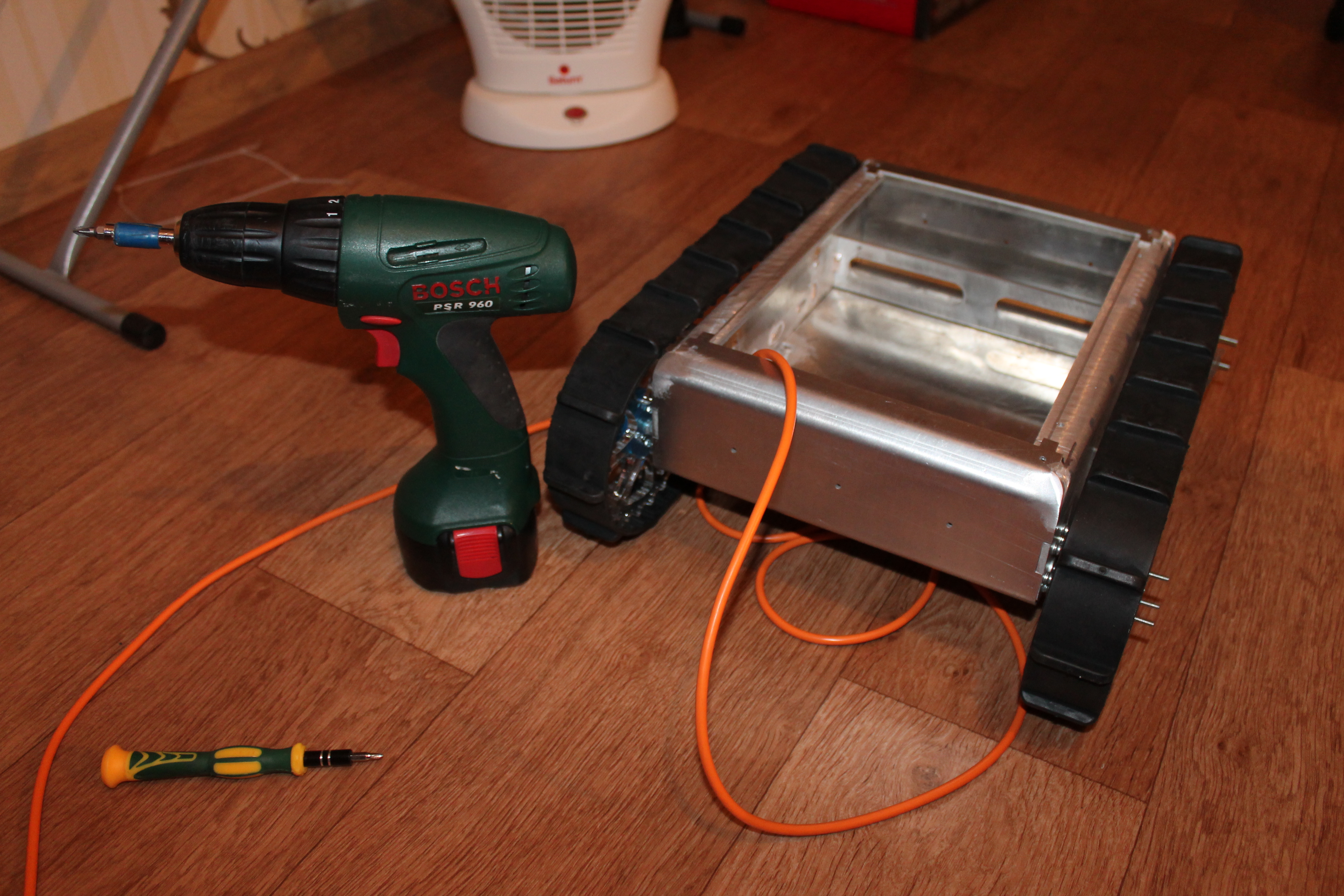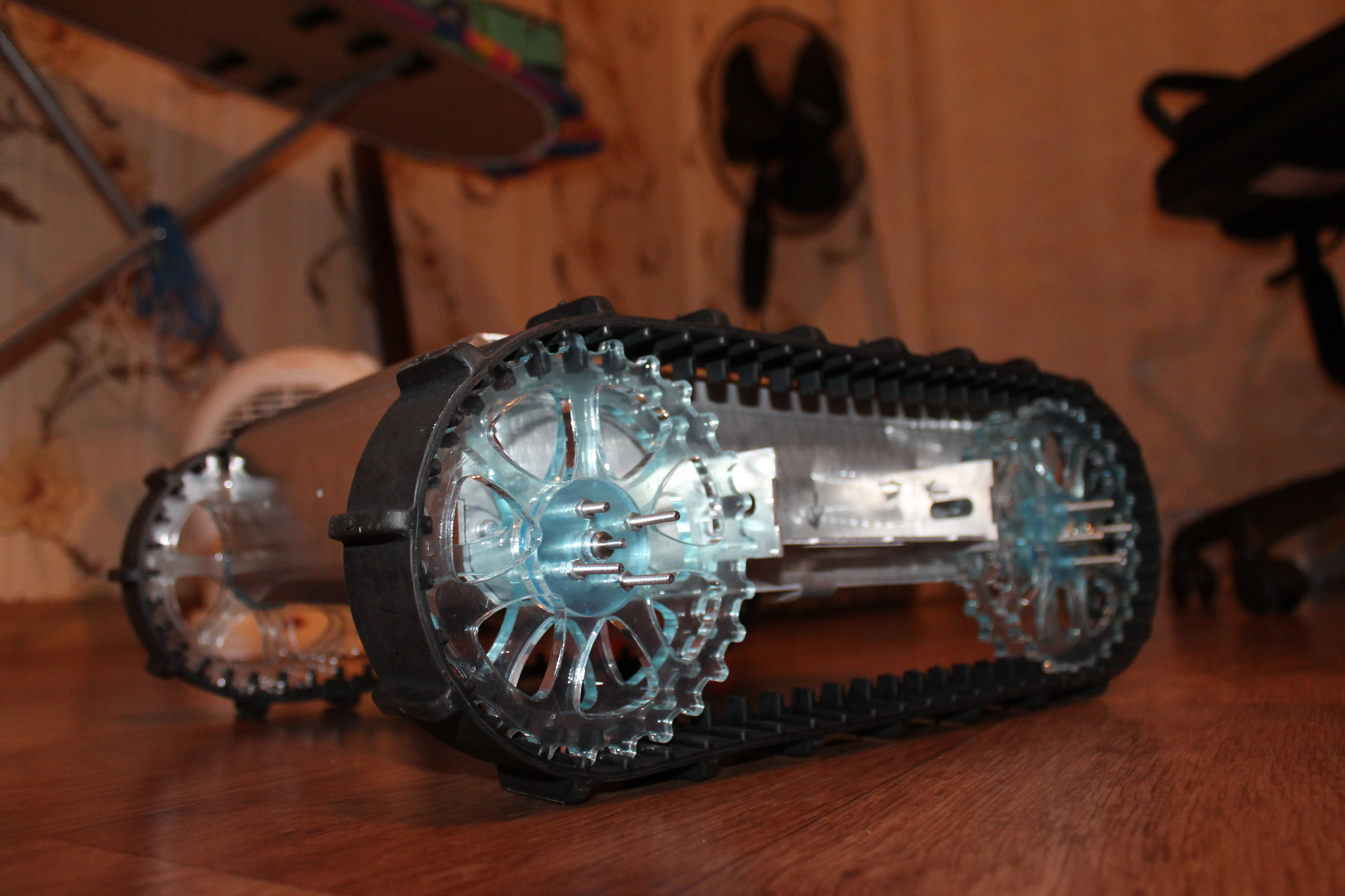 Уважаемые коллеги, выношу на Ваш суд очередное свое творение. Я спроектировал и собрал маленькую мобильную платформу на гусеничном ходу. Электроникой пока не занимался, только шасси и привода.