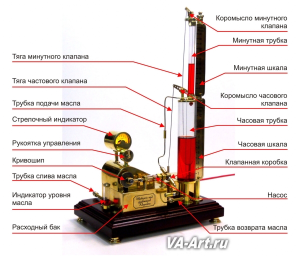 Устройство простецкое. 3 акриловые колбы, диаметром 40мм, для часов, десятков минут и минут. 3 соленоидных клапана и насос на 12В. 3 ярких светодиода для подсветки (мигание, фейдер, бегущий огонь) Платка с транзисторными ключами, микродуня и часы RTC.