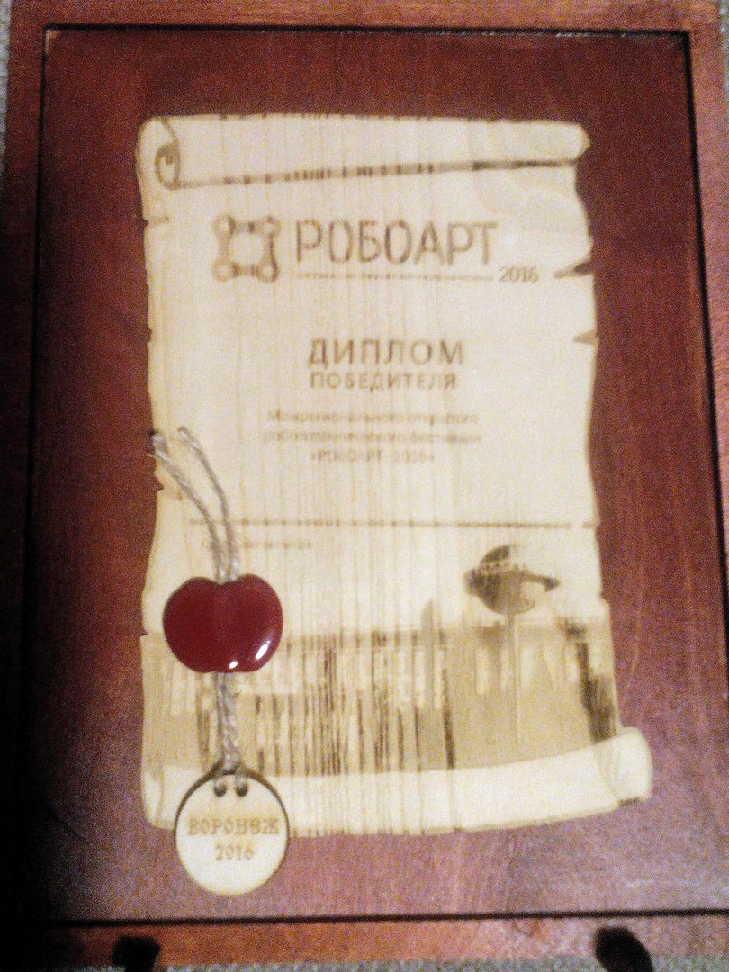 За победу дали флешку 64Гб Вечный диплом победителя из дерева, ну и обычный бумажный диплом.