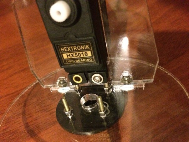 Крепление платформы вращения к вертикальному держателю выполнялось винтами и гайками, которые подбирались случайно. При этом были огромные сомнения о жесткости конструкции, однако они не подтвердилось. Элементы относительно друг друга закреплены надежно, люфта нет.