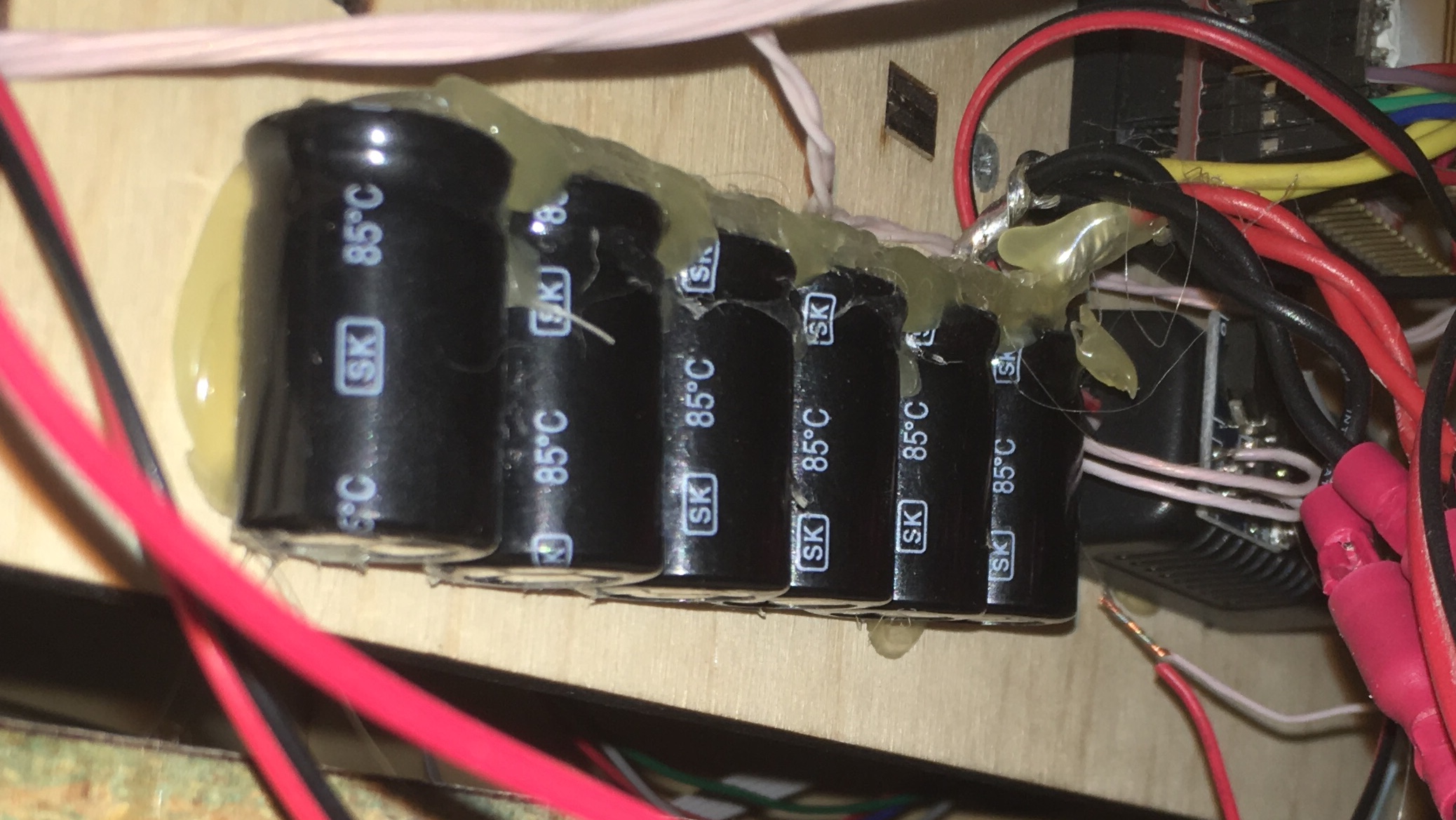 0.1 керамика на моторы серв это больше похоже на лечение второстепенных вещей. что бы прям так сильно помехи делали, сомнительно. пока есть подозрение, что есть жуткие наводки или где-то резко проседает напряжение ("бутылочное горлышко"). немного подфеншуить моторы сервы и актуатора, да в принципе тоже можно. только ставить высоковольтную же керамику нужно. можно один, два или три конденсатора делать. один - выводы конденсатора на пины мотора. два - один кондёр на один вывод мотора, второй кондёр на другой вывод мотора и ножки кондёров между собой спаяв на землю. три это совместить первые два варианта. ещё можно индуктивность. конденсаторы пропускают переменку, но не пропускают постоянку. индуктивность пропускает постоянку, но не пропускает переменку. индуктивность "бусинкой" или просто спиралька или ещё как. по хорошему как-то считать нужно, но как не помню.