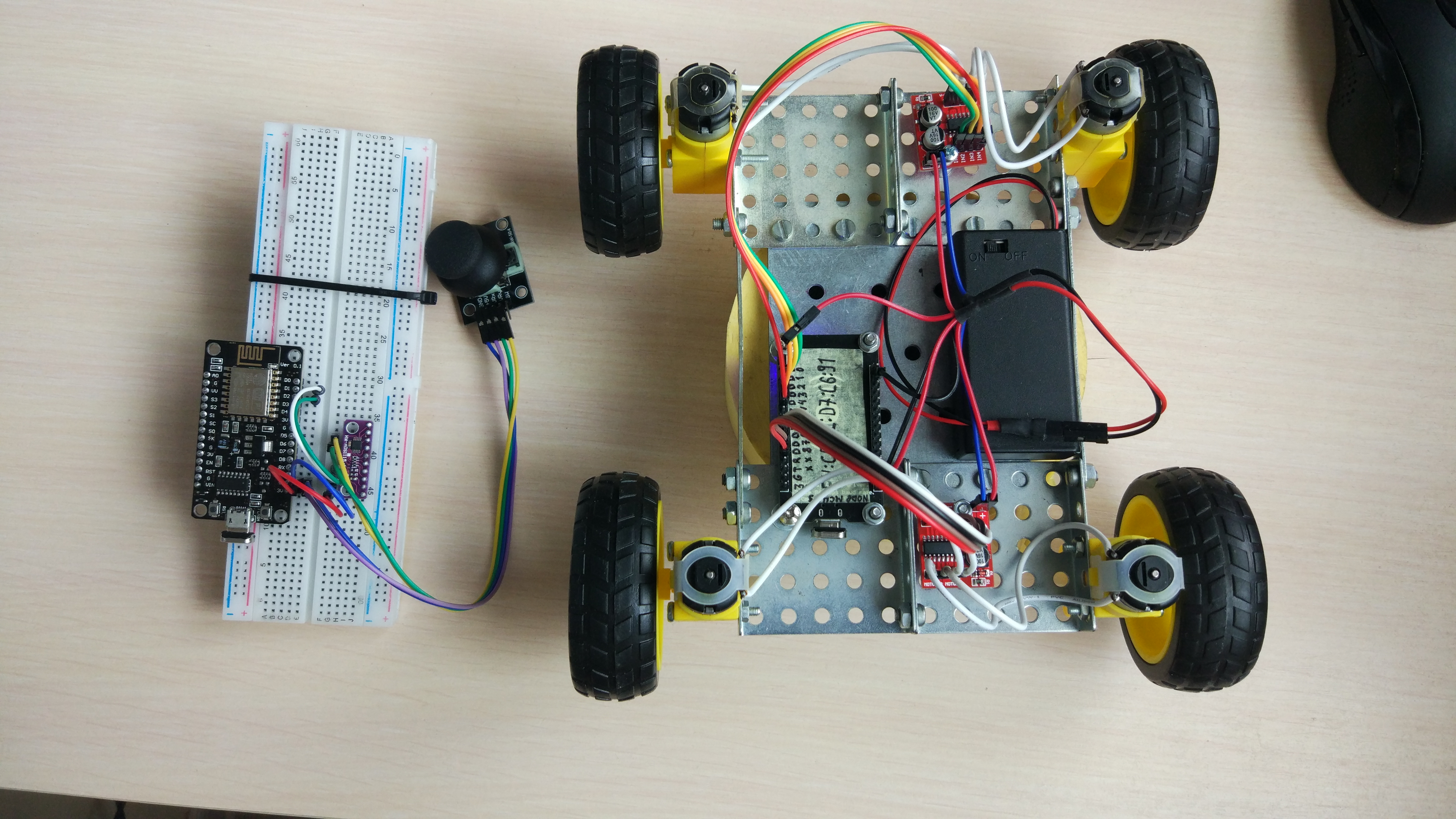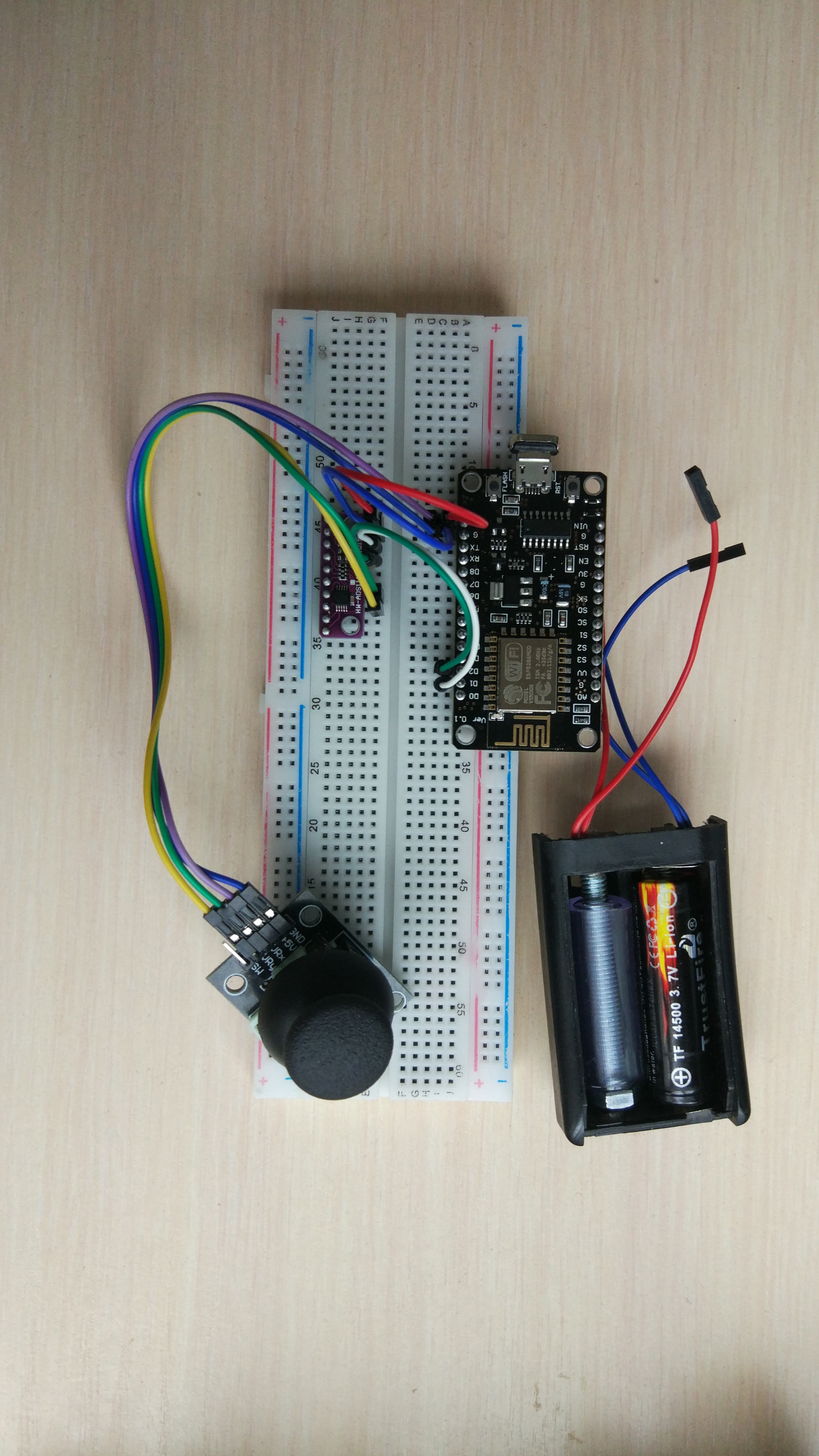 В наличии нашел ESP NODE MCU v.3, джойстик HW-504(крайне отвратное устройство-конечная половина хода по всем осям просто не изменяет сопротивления, может кто дать совет по нему-доработать переделать),движки со встроенным редуктором с колесами,два двоййных H-моста на L9110, АЦП ADS1015(так-как на ESP только один АЦП), питание от двух 14500 Li-ion.