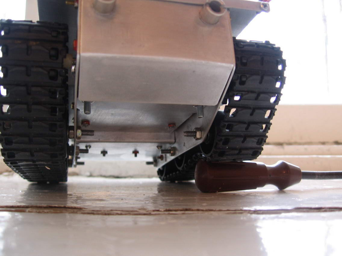 Робота (точнее пока шасси) сделал шире и ниже и при этом дно выше от пола. Само шасси получилось намного красивее как мне кажется, легче и проходимее за счет того, что угол наклона передней части гусеницы с полом - 45 град.