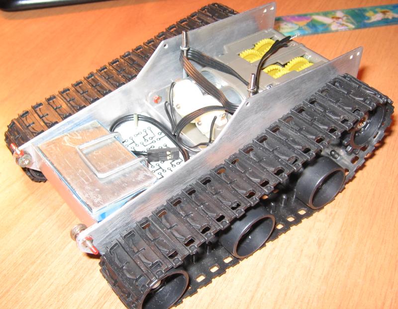 если речь идет о редукторах и модулях - то я ответил. Железо самодельное. Гусеницы от игрушки.