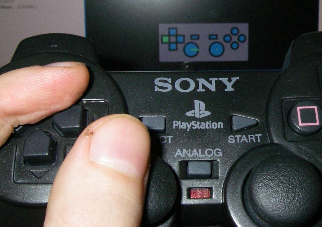 (там на экране видно, что нажата одна кнопка и джойстик отклонен вправо)