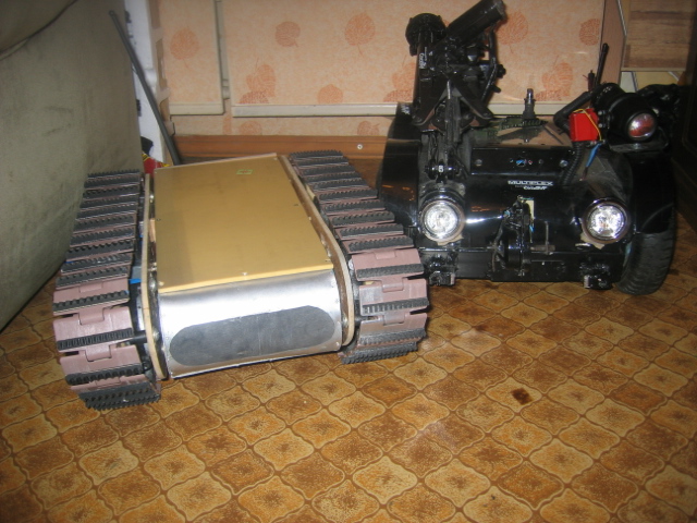 -вомне 95 кг +чумадан с инструментом .да иакб в таком режиме день отработали-18ач,поручни действительно непомешалибы уж больно она бешенная,шестерни к сожалению действительно прямо на валу все делалось на скорую руку.Дети славо богу целы .а вот я при первом запуске пострадал неслабо царапины и синяки от протектора палец затянутый между приводной шестерней и траком .,собирал проводку что то попутал и эта НЕЧИСТЬ бросилась на меня со стола и уронила напол -гадина,В будующем планирую немного переделать базу и сверху еще какой нибудь фигни нацеплять -манипулятор может или чтото другое там видно будет,кстати весу в нем всего 15кг посравнению с первой конструкцией просто дистрофик