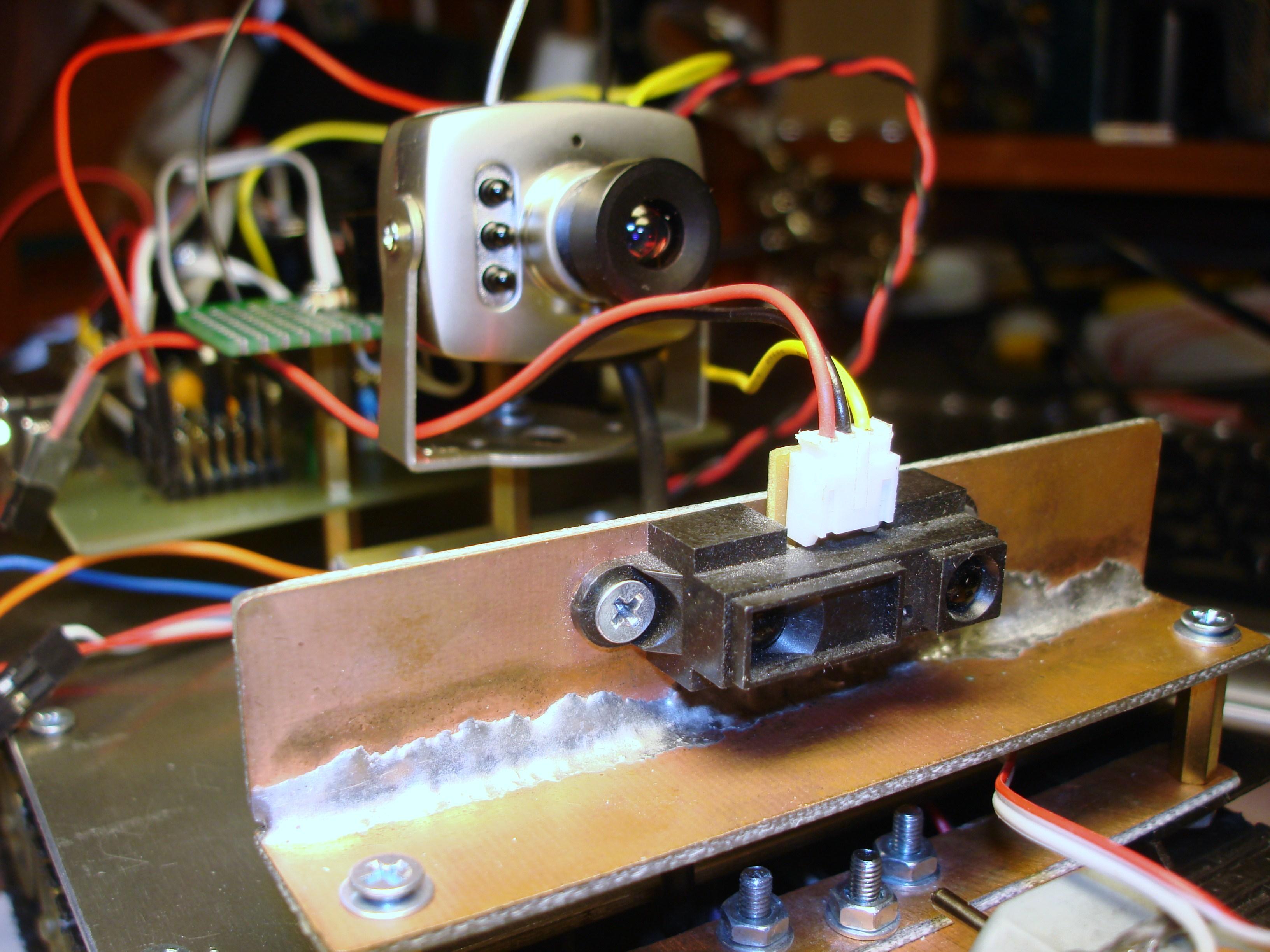 - Датчик препятствия\расстояния SHARP GP2D12 (диапазон от 10 до 80 см).