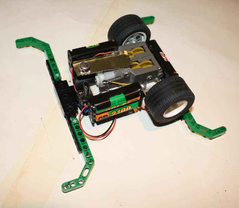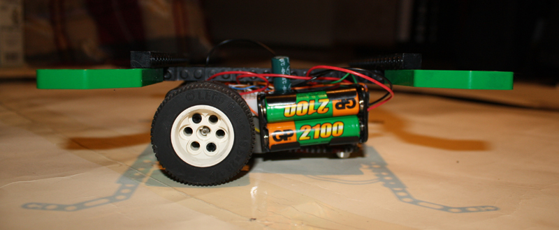Если это вопрос, то изначально я планировал 4... Всё настроил, круто работает, не заносит, очень точно... Как прибавить скорости? Ещё 2 повесить!.. Тут конечно начались проблемки: то на дыбы встаёт, то заносит... Вот пришлось все отсеки (3 - по 2 батарейки) оторвать и думать как их по - другому прилепить... Вот и получилось такое чудо.