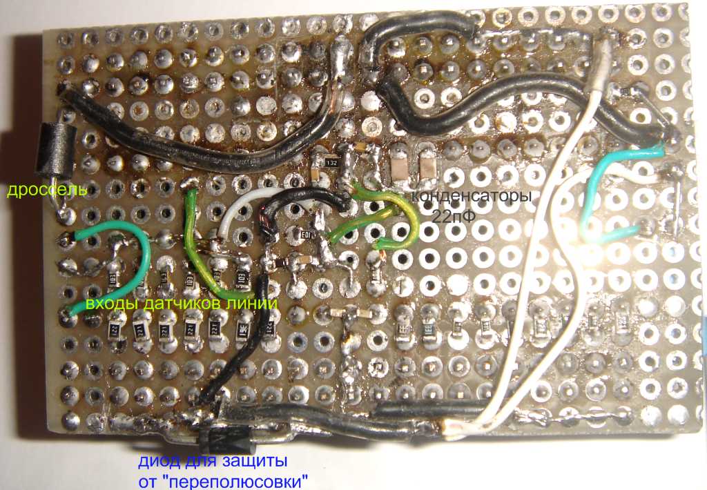 Вчера-сегодня собрал 8-элементный датчик линии. ИК-приемники их старых шариковых мышек (можно и от колесика оптической). ИК-светодиоды 940нм - в мышках слабоватые.
