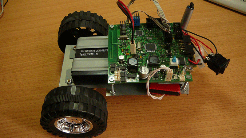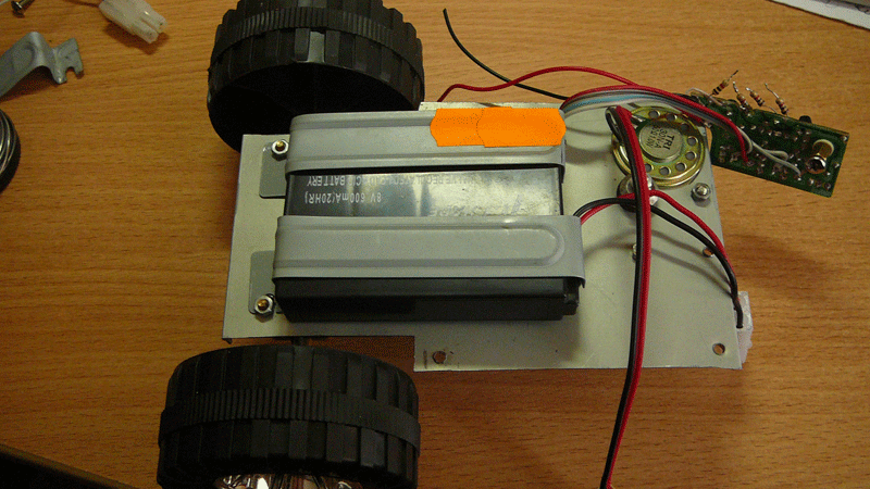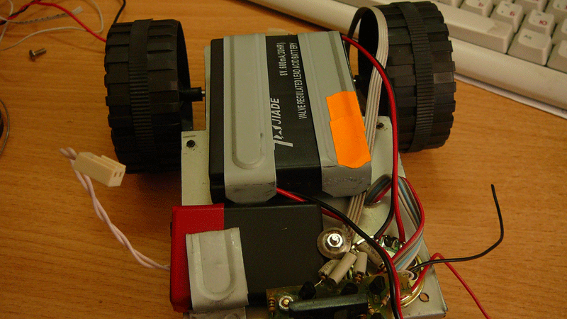 Ну наконец смог что-то собрать свое. К критике нормально отношусь, знаю что недочетов много - но это мой первый робот, потому кое что можно допустить. Я его планирую дорабатывать и результаты выкладывать в этой ветке. В общем электроника на основе полной комплектации электроники минибота. Шасси самодельное: основа - железо компьютерного блока питания, редуктор от игрушечного танка (довольно мощные двигатели потребление=1-1,5 А),драйвер двигателей тоже от него. Аккумуляторов 2, 1й 8 В 750 мА, 2й 4,2В, от сотового телефона. Подруливающее колесо от мебельного колеса. Робот управляется пока от ИК пульта, жду ИК-дальномеры, когда будут, тогда сделаю чтоб автономно двигался. Пока поставил на движки выключатель от компьютерного блока питания, потом чем нибудь заменю покомпактнее. Ниже выкладываю фотографии. Это незаконченый вариант, планирую дорабатывать