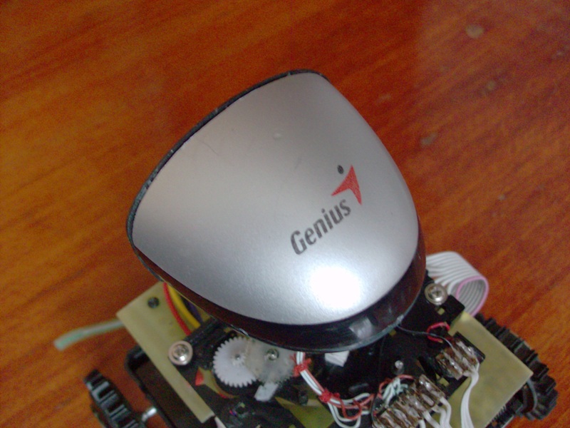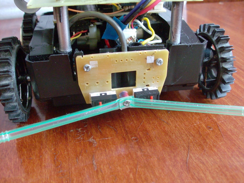 Дальше нужно было сделать датчики препятствий, городить не стал, сделал усики, взял плату от мышки, отпилил, прикрутил. Кстати мышку еще один друг когда-то дал.