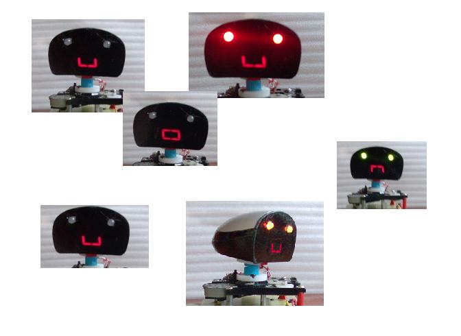 Насчет самой головы: здесь же пригодился корпус от мышки, от которой плату для усиков использовал. Распилил его пополам, спереди приклеил кусок пластика, вставил красно-зеленые светодиоды-глаза, для рта использовал 1 семисегментный индикатор, наклеил тонировку(аккуратно не получилось, всю тонировку перевел - был кусок 20*20).