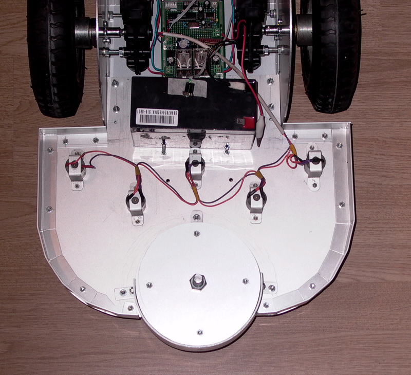 Насчёт колеса в качестве бампера - нерационально, я думаю проще косы поместить типо в нишу (как в обычных косилках) и защитить их реально, как положено, т.е. не оставлять "голыми" совсем... например, два ребра-щеки вниз (из того же материала) по краям перпендикулярно осям колес, при этом и заскок на высокую плитку не принесёт вреда косам, а бОльшими колёсами проще заскочить на тротуар, нежели уперевшись мелким, да ведь наверное и бампер будет для бордюра то?... Ну а ц.т. дело наживное