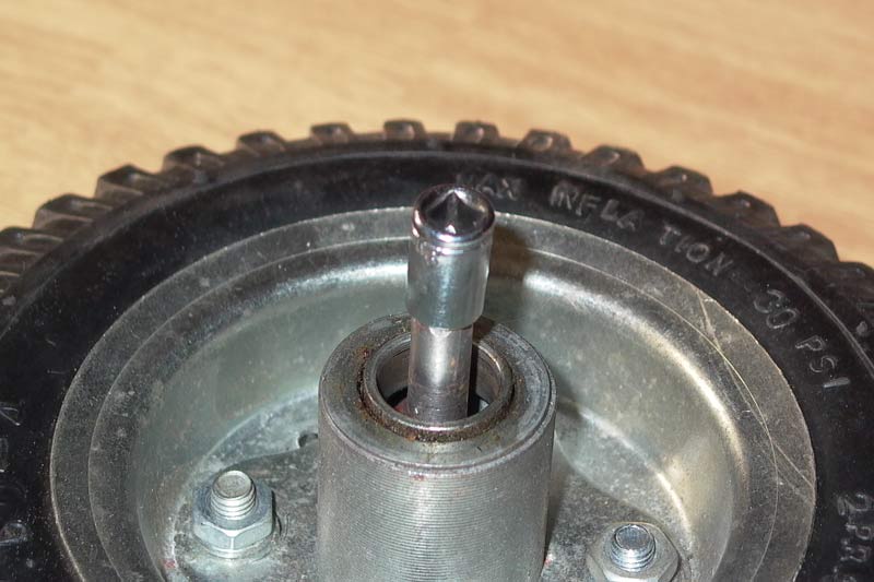 Именно головки торцевых ключей и использовал в качестве переходника с моторредуктора на ось колеса.