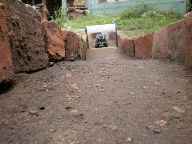 Трассу сделал из того что было, в ход пошли старые кирпичи (хватило тык в притык). Длина трассы получилась ровно 9 метров.