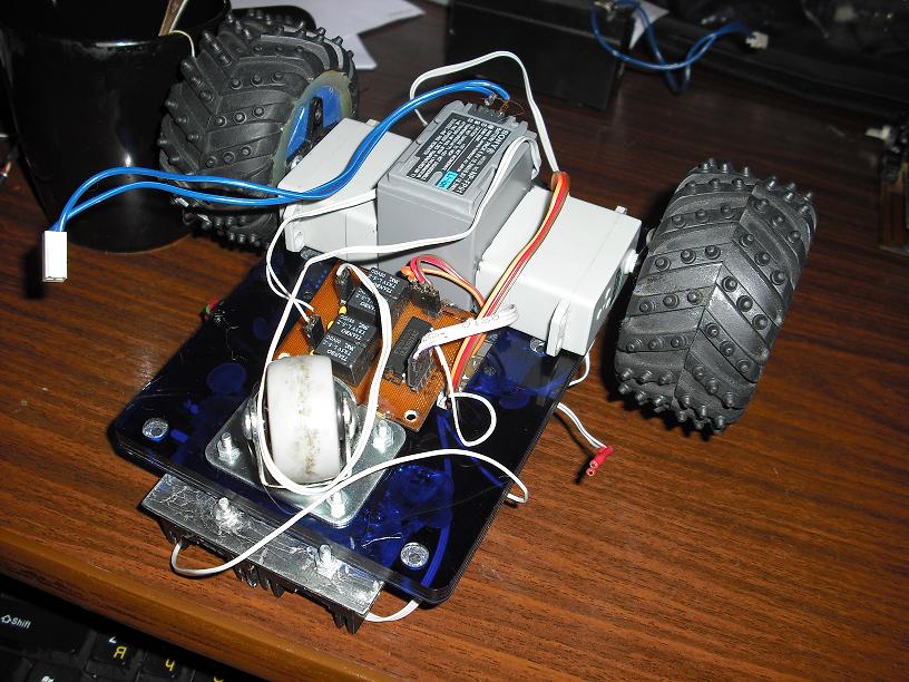 =DeaD= писал(а):2space: Я так понял на шасси модифицированные сервы? И даже с вытащенной из них электроникой - что не совсем понятно зачем сделано - судя по всему еще и ДД на базе реле пришлось городить?