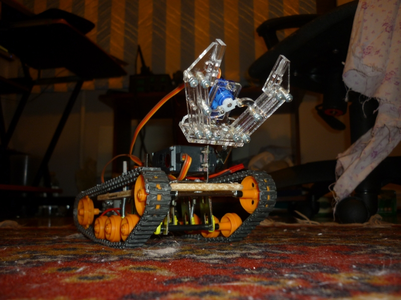 В планах надстройка "вторым" этажом, где будут располагаться непосредственно контроллер (планирую использование нового контроллера от Open Robotics и блютуз модуля той же фирмы), выдвижная штанга с термопарой (для измерения температуры в точке) и дальномер с беспроводной камерой. Камеру планирую крепить на поворотном модуле с двумя степенями свободы (там же будет располагаться дальномер).
