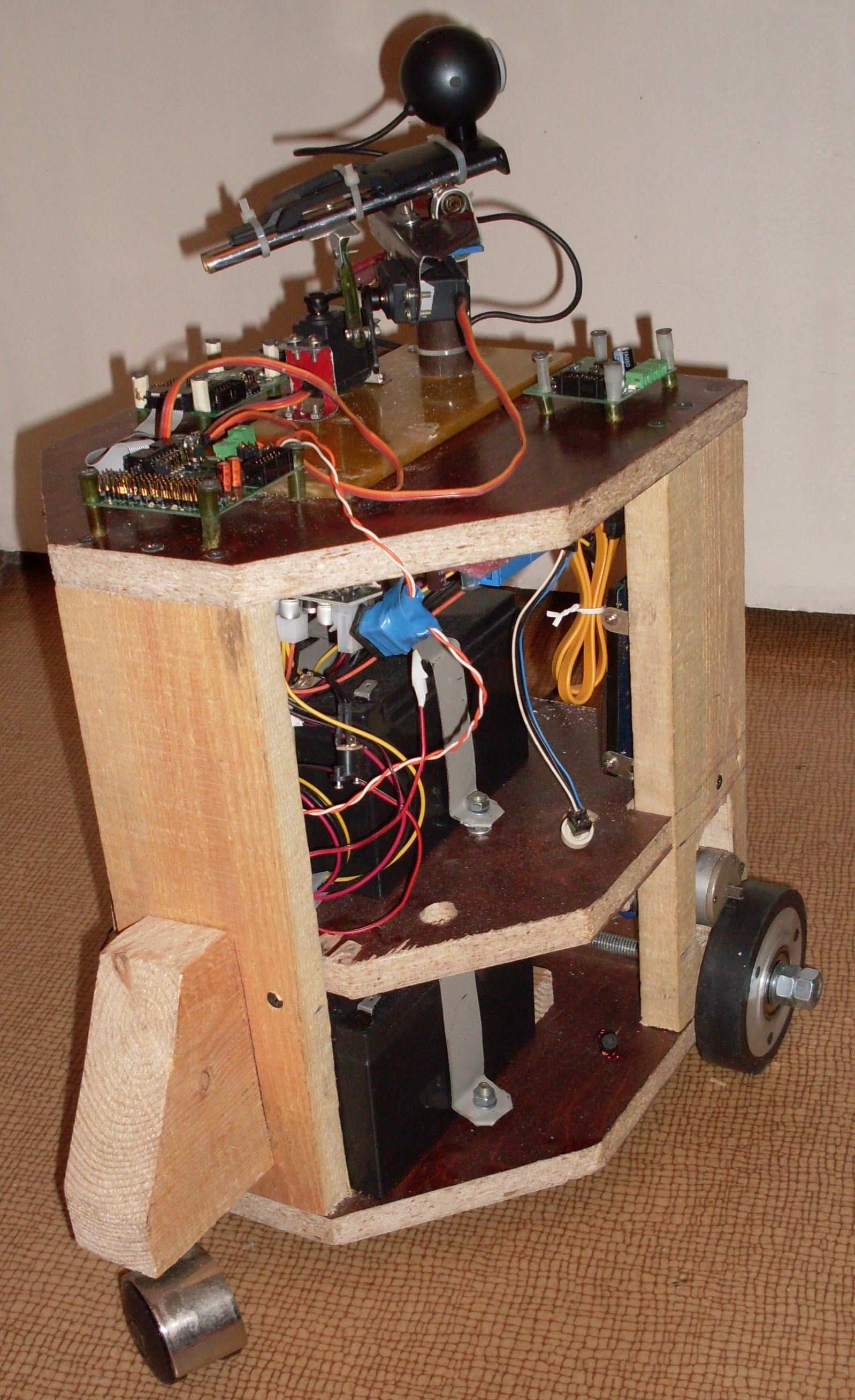 Я бы тоже хотел манипулятор сделать. Для этого зарезервирована мощность аккумуляторов, выходы/входы контроллеров, есть место куда крепить. Но пока нужно разобраться с другими очень важными вещами, а именно - с программами.yak-40 писал(а):Только ещё манипулятор надо обязательно сделать. Но не на стандартных сервах, они слабые, а на чём нибудь помощнее. Что-бы тапочки можно было попросить принести, ну или бутылочку пива из холодильника..