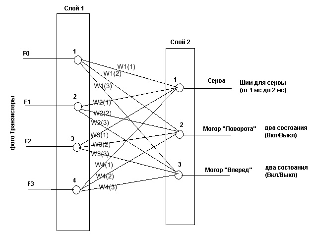 'с входов фотосенсоров на вход нейронной сети