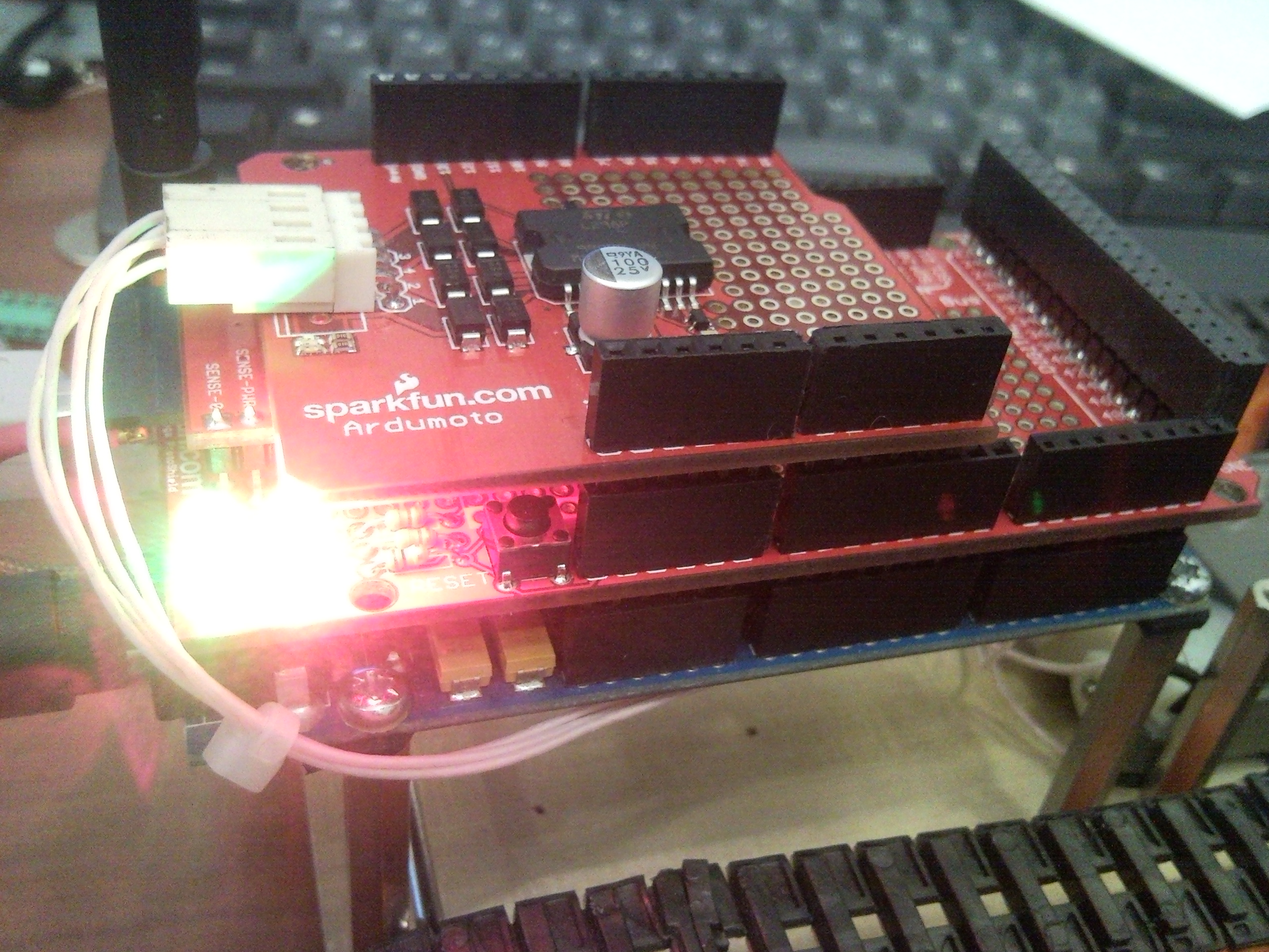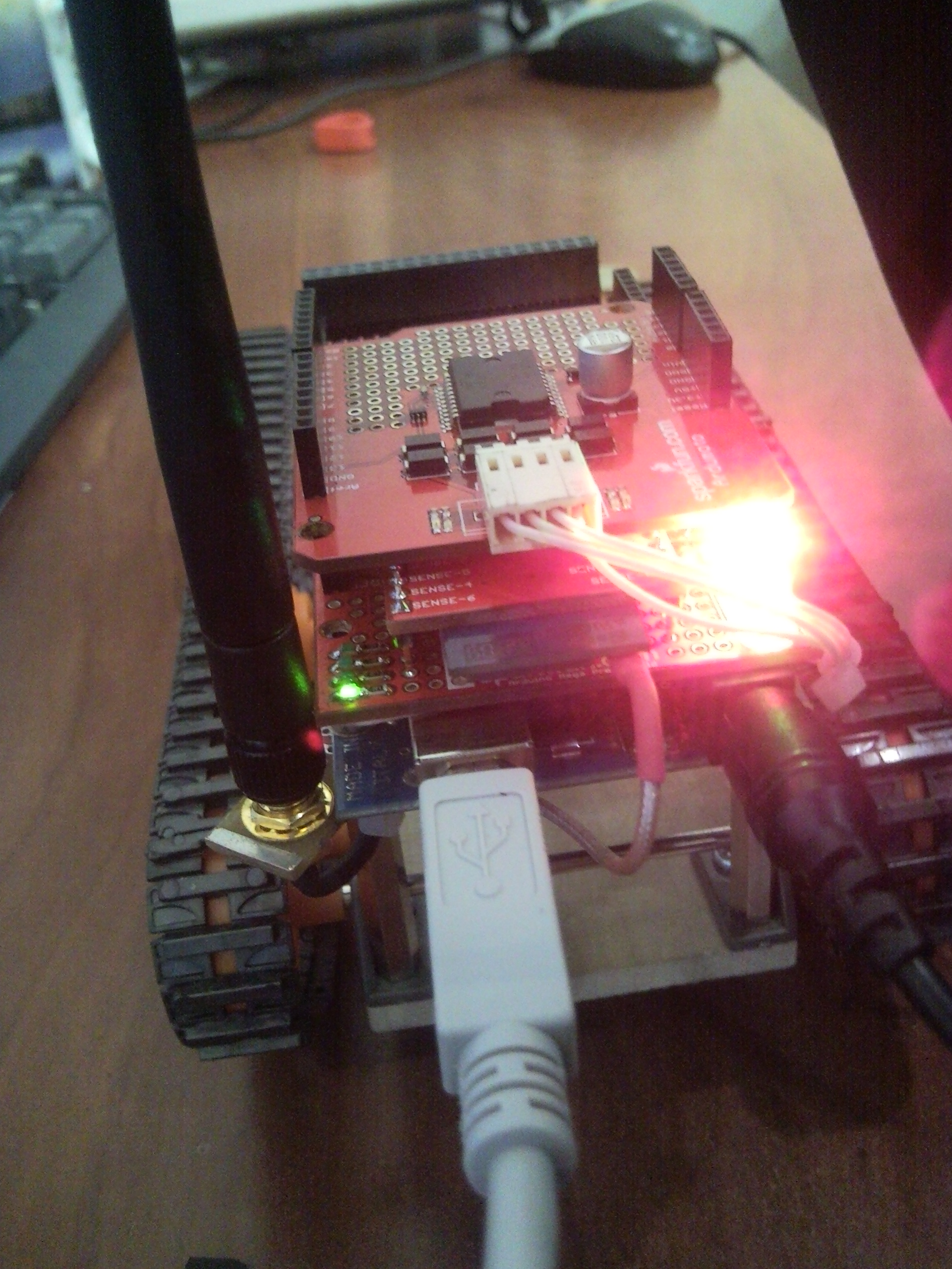 Пока платформа умеет получать и отрабатывать команды (пока это команды движения) как по кабелю, так и через WiFi соединение (у меня WiFly сконфигурирован в режиме AdHoc, но WiFi модуль поддерживает работу в обычном режиме).