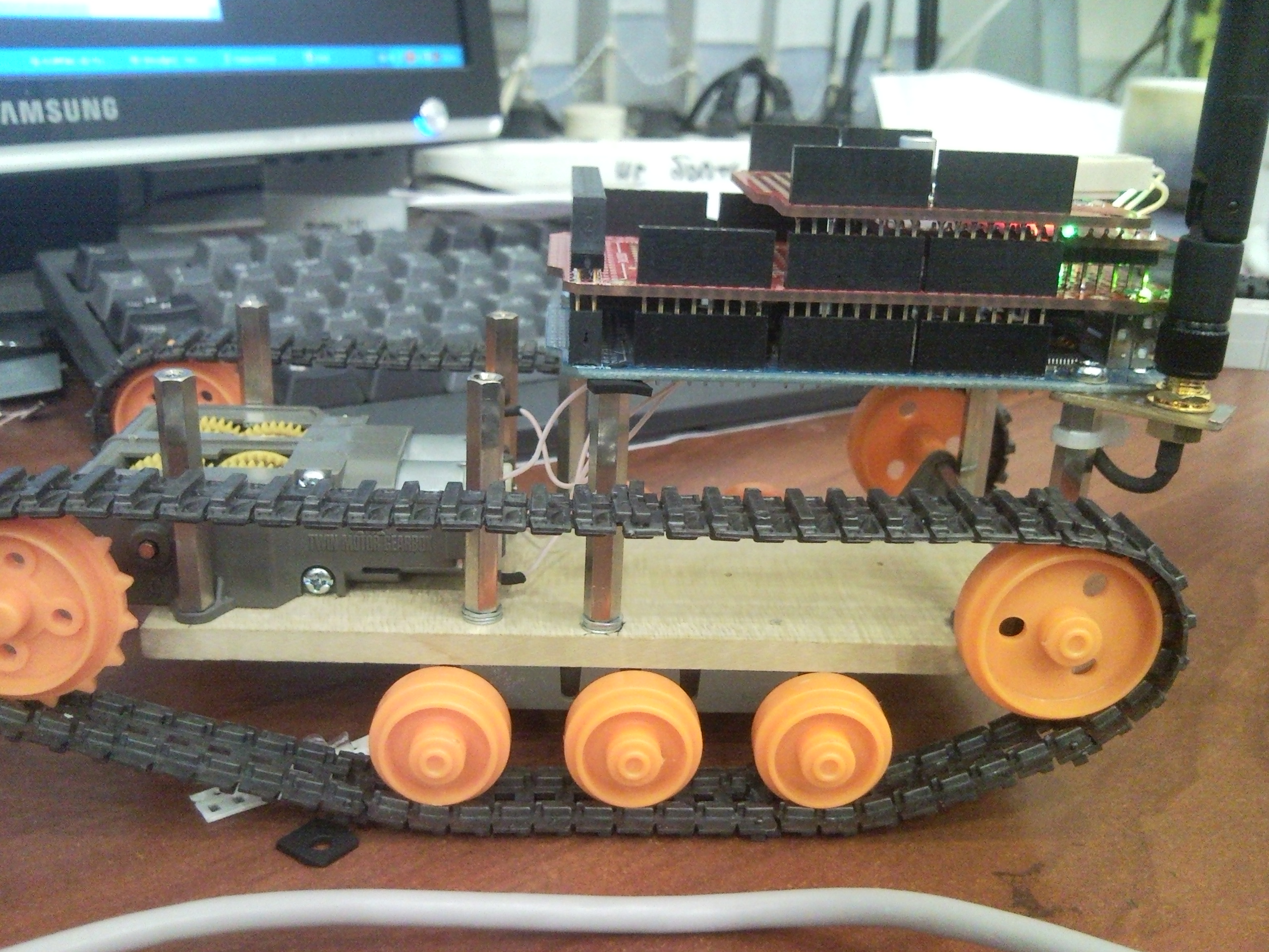 Пока платформа умеет получать и отрабатывать команды (пока это команды движения) как по кабелю, так и через WiFi соединение (у меня WiFly сконфигурирован в режиме AdHoc, но WiFi модуль поддерживает работу в обычном режиме).